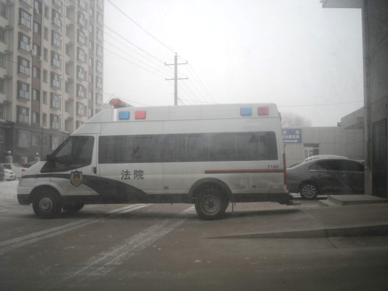 ![]() 图四:等待的法院警车 |