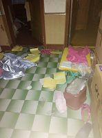 在抢劫刘素芝家的时间段二零一五年十一月十三日下午四点多钟,有目击证人(刘素芝的一个朋友要到家中找她)看见在刘素芝家的楼前停有一辆面包车,下来五、六个警察。以下是刘素芝家中遭警察抢劫后的现场照片。