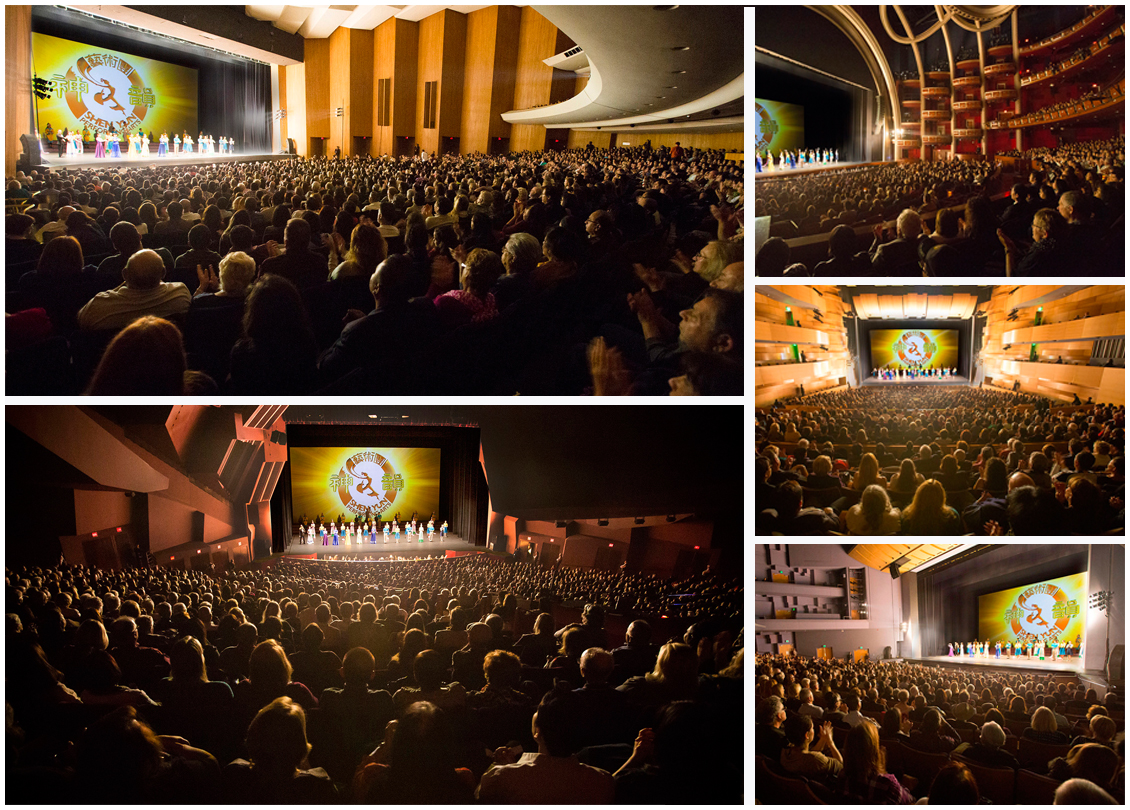 ![]() 图2:神韵艺术团在南加州五城的剧院内演出,观众爆满的盛况。左上:长滩市,左下:橙县科斯塔梅沙,右上:好莱坞,右中:北岭,右下:千橡市。 |