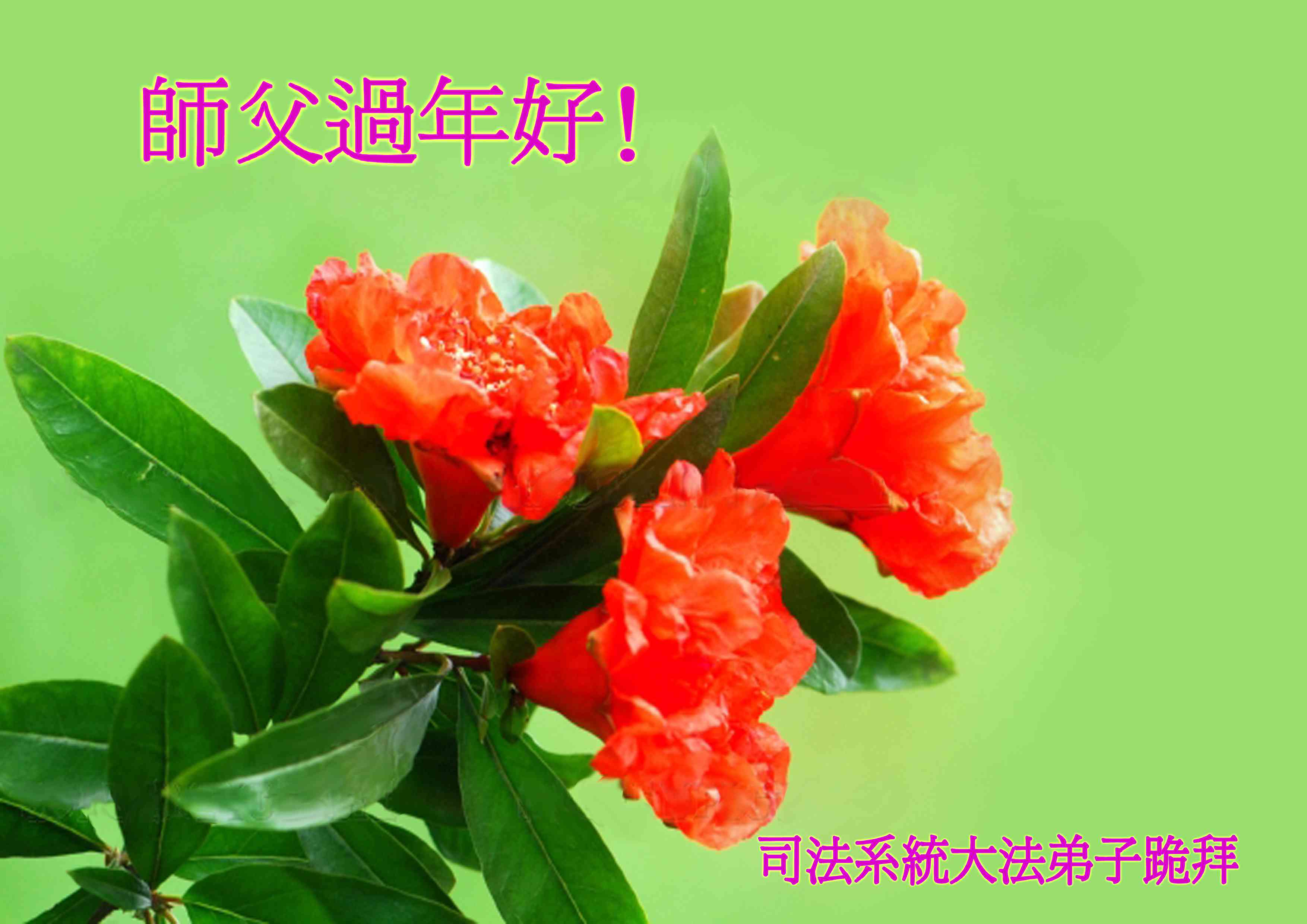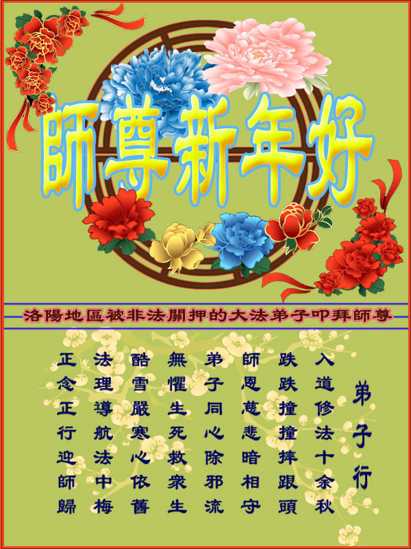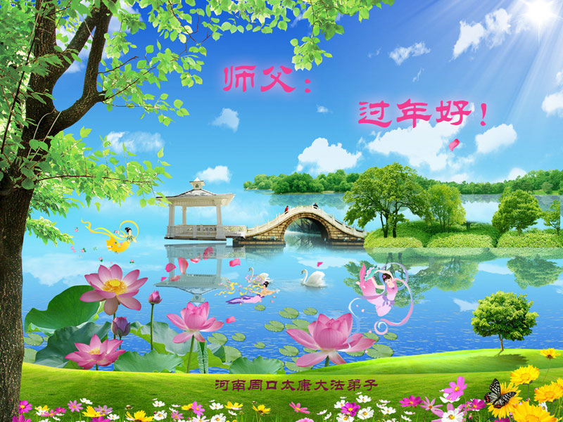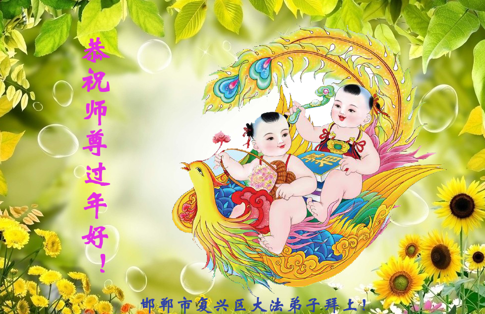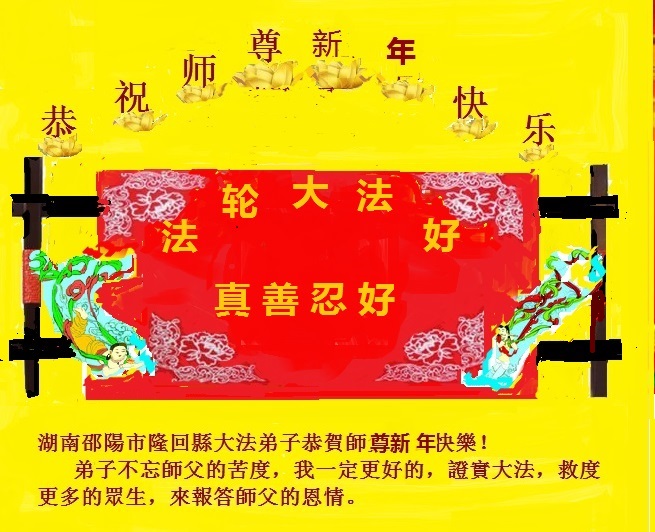 祝李大师过年好,拥护法轮大法好,支持法轮大法好,我知道真善忍好,我做好良民。