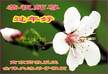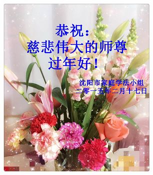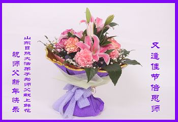 我今年79岁了,我以前因为胆小怕共产党的那一套整人的伎俩,不支持我的亲人炼法轮功, 后来在亲人的劝说下看了《九评共产党》、《神韵》、《未来人的神话故事》等等真相小册子之类,彻底明白了真相,我常念法轮大法好,身体更加健康,有时我还看看大法书籍,我昨天去买来鲜花给您敬上,又叫我外孙女帮我做成贺卡给您拜年! 谢谢李大师!