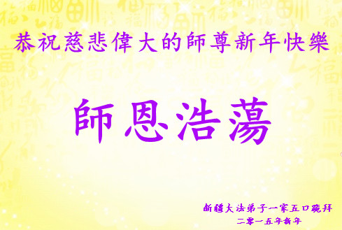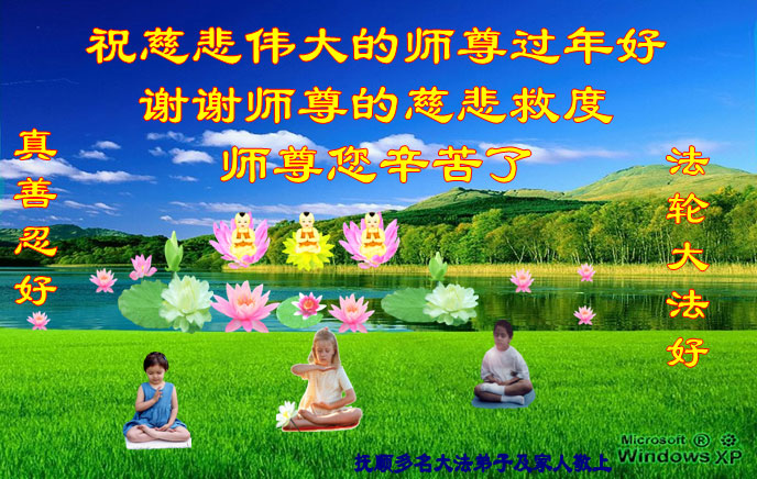 我们妈妈是炼法轮功的,我们也一直在李大师的慈悲呵护下,几次开车在路途中,都能遇难呈祥。在这辞旧迎新的大年中,我们跪拜恩师的慈悲救度,感恩李大师的护佑!恭祝李大师新年快乐!