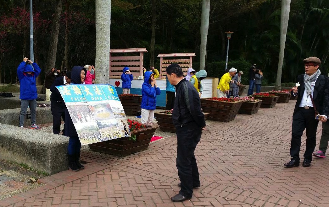 【明慧网二零一五年二月二十二日】每天台湾都有高达上万大陆民众来到台湾观光旅游,二零一五年的新年大年初一,各方游客来到士林官邸、国父纪念馆等景点,都能看到法轮功的真相展板,也聆听了法轮功学员讲述的真相。