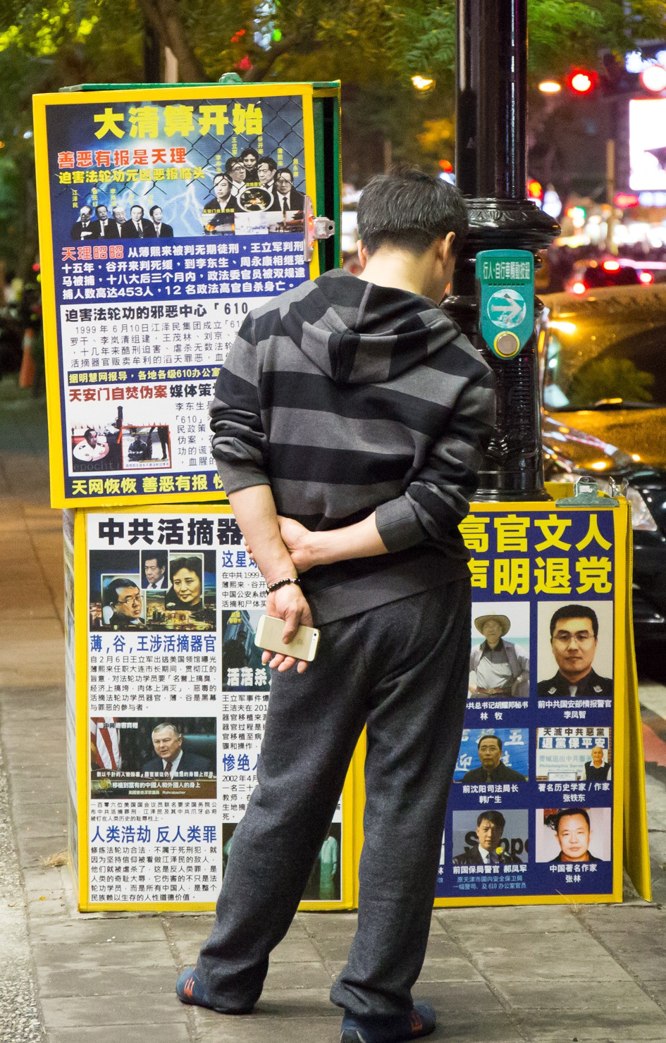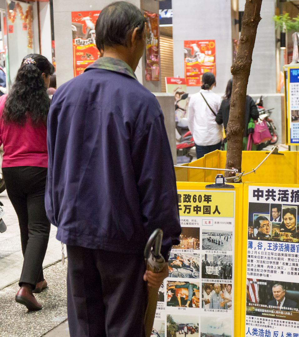 李先生也鼓励他的团员把握时间看这些展板,因为这些讲得很在理,他们在中国大陆是看不到的,他对团员说:“材料你们爱拿就拿,爱听就听,利用在台湾的时候赶快看、仔细听,不然到海关入关处就会被没收。”他有同学和朋友在大陆也是炼法轮功的,朋友都提醒他到海外风气自由,多多了解,把看到的现况回去跟他们说说。