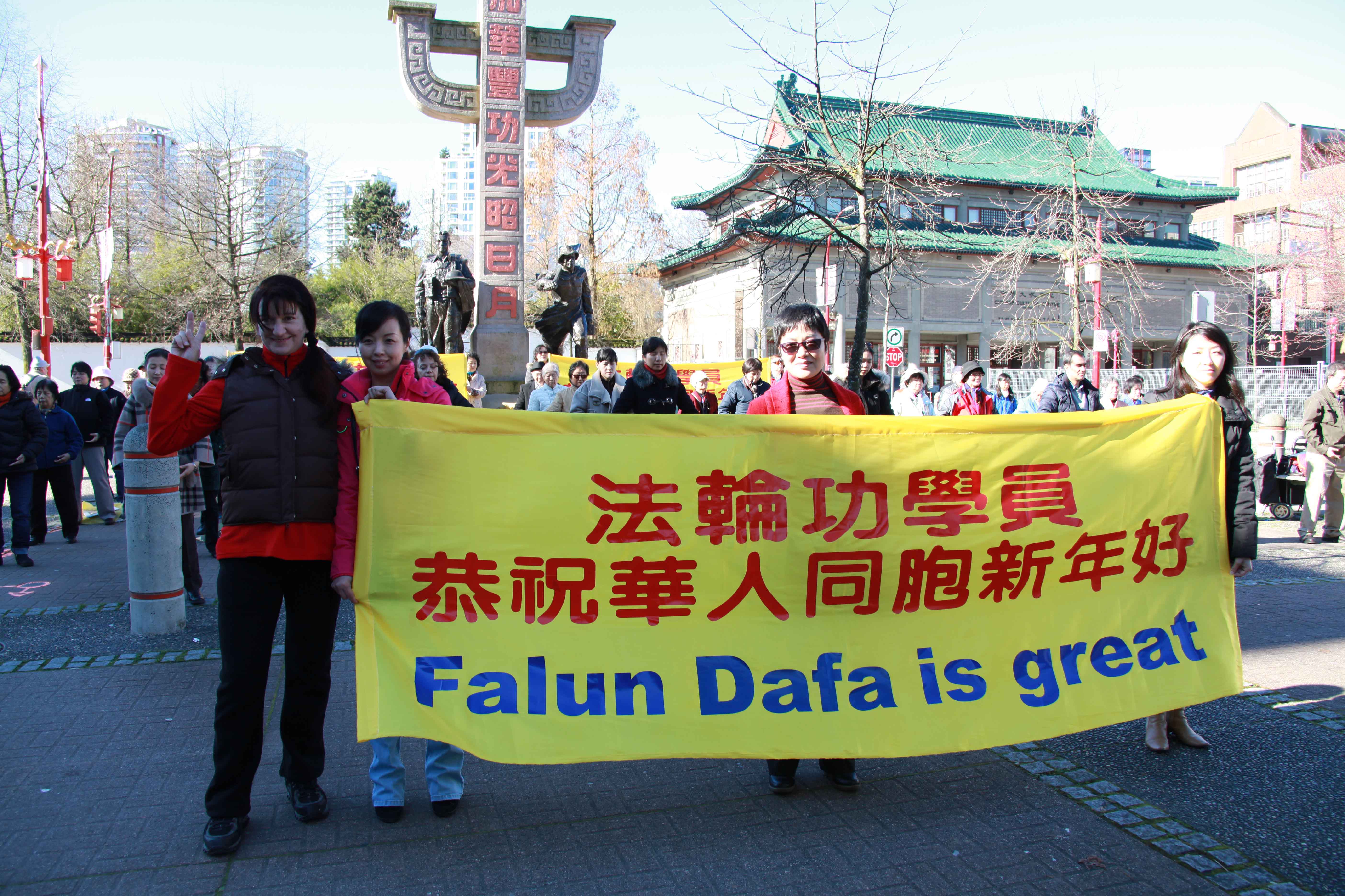![]() 部分温哥华法轮功学员在中国城举行讲真相活动,并给温哥华华人拜年送祝福 |
