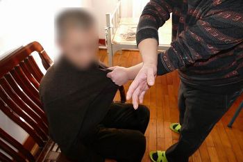 这时,我已经被他们折腾的筋疲力尽了,心脏撕裂般的疼痛,被他们迫害得已不成人形。血压急剧升高,心慌、恶心、头晕、呕吐……周景峰躺在沙发上喊着:“你要吐出来,就让你给我吃进去!你死不了,我们有药,还有医院。”朱少鹏躺北床上,金言鹏躺南床上玩着手机,还不时的把床往两边拽紧。我痛苦的真的是无法形容啊!一直到下午五点开饭的时候,陶华进屋对我说:“快写吧,别遭这个罪了,早晚都得写。”我已经承受到了极限了,真的是生不如死。死又死不了,无可奈何地妥协了。她就说:“我给你问问领导。”到周景峰吃完饭回来,说:“不行,不能给解开手铐,你到时再反弹怎么办?”但是他们怕我出问题,把我脚上的绳子解开了。金言鹏说:“不行,你说写就写呀?我们还没玩够呢,要是早写了,我们早就回家了,到晚上12点再说吧!”每一分钟都象一年那样难熬!又过了大约一小时,朱少鹏说:“我再去问问领导看看行不行?”回来说领导同意了,他才把手铐打开了。这时,我的胳膊、腿、手、脚都已经失去了知觉,还伴随着身体疼痛,右肩拉伤。直到现在右肩、肘还不敢吃劲儿。酷刑持续了五个小时左右。