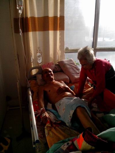 ![]() 上图为:石孟昌的老父亲,因儿子、儿媳被迫害着急上火而病倒住院,经过一个多月的抢救治疗,命算是保住了,但瘫痪在床至今,老母亲不离左右的照顾着老伴。 |