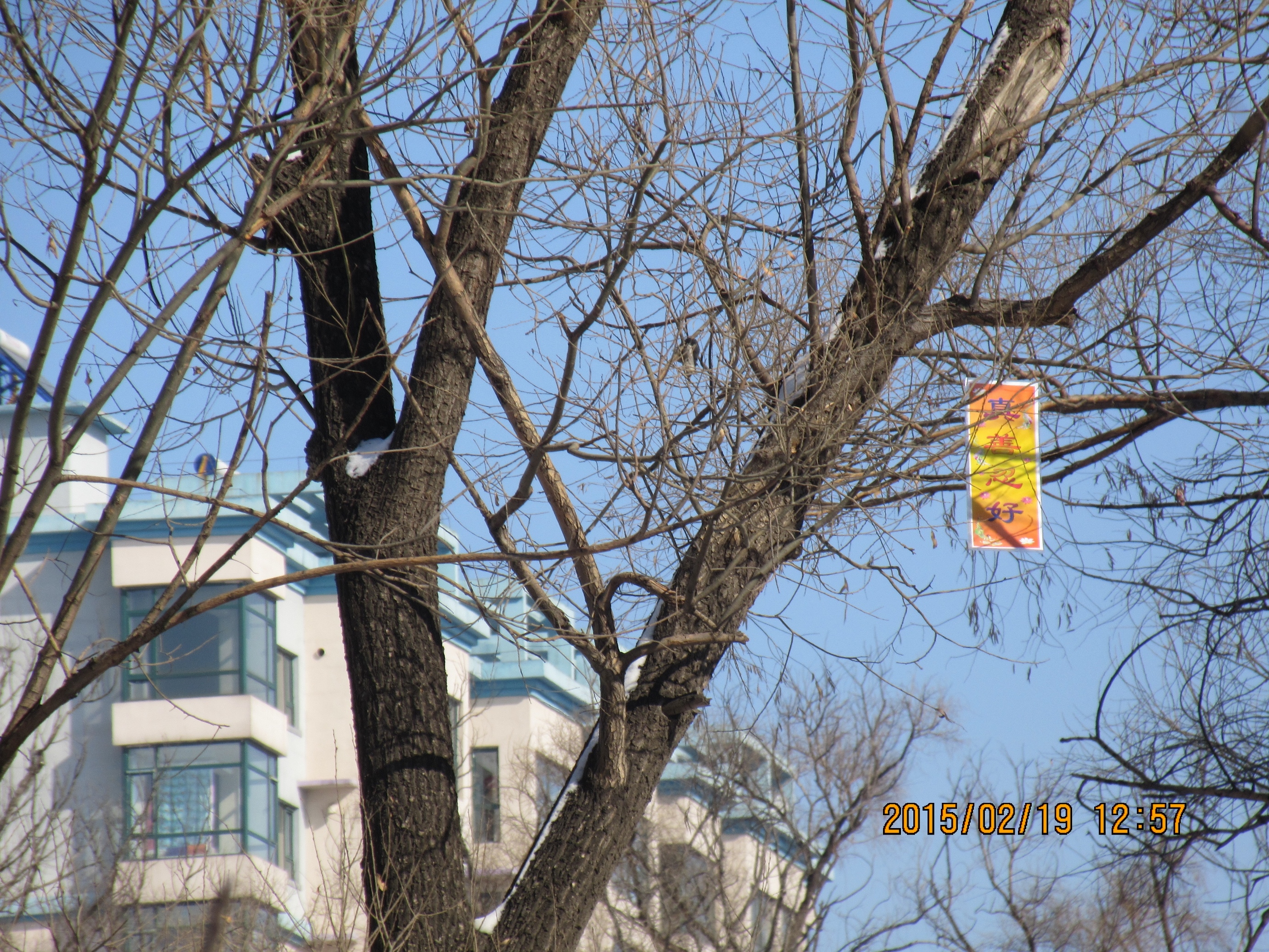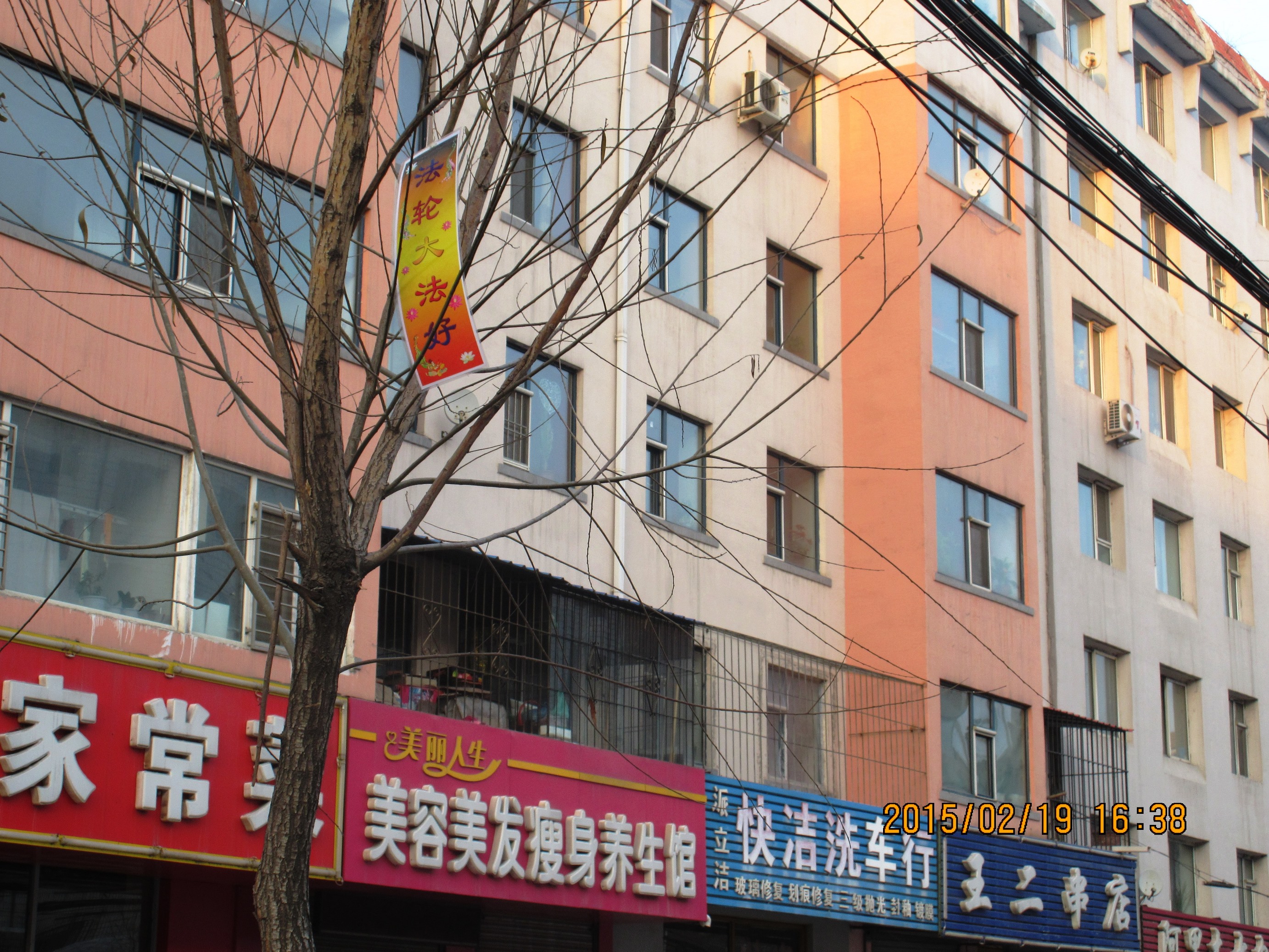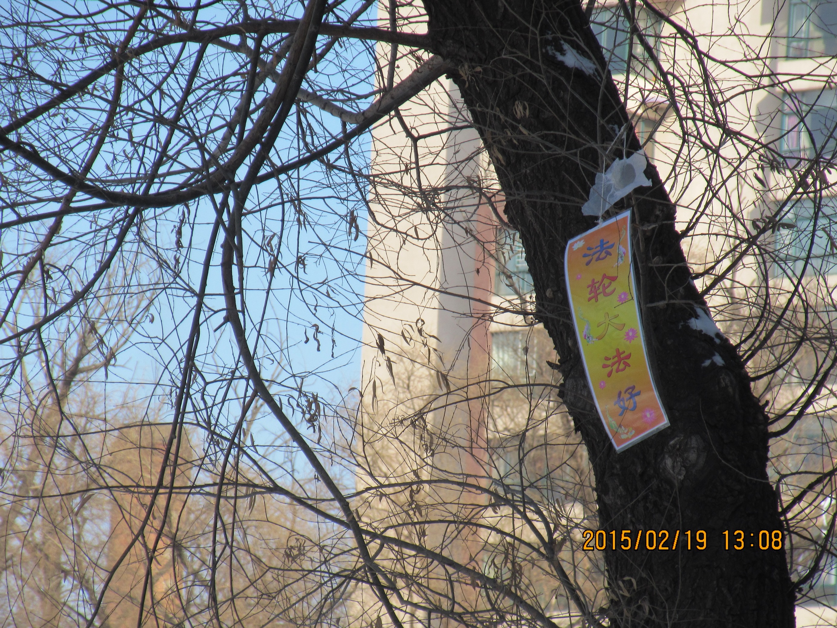 大年初一,吉林省某市法轮功学员悬挂真相条幅给人们送来春天的祝福过年期间,辽宁某市的真相条幅