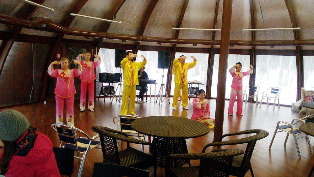 【明慧网二零一五年三月十一日】二零一五年三月七日,部分莫斯科法轮功学员来到菲利公园,为公园工作人员及前来公园游玩的民众介绍法轮功。