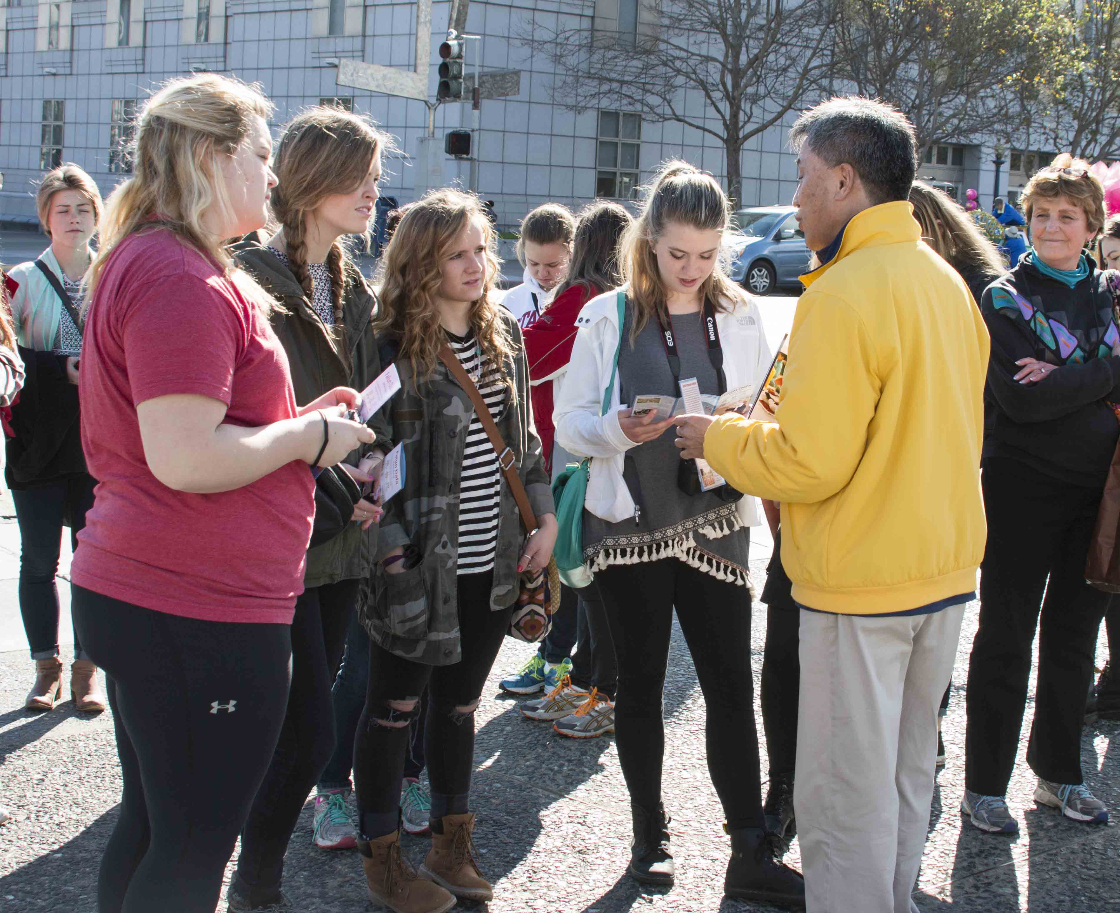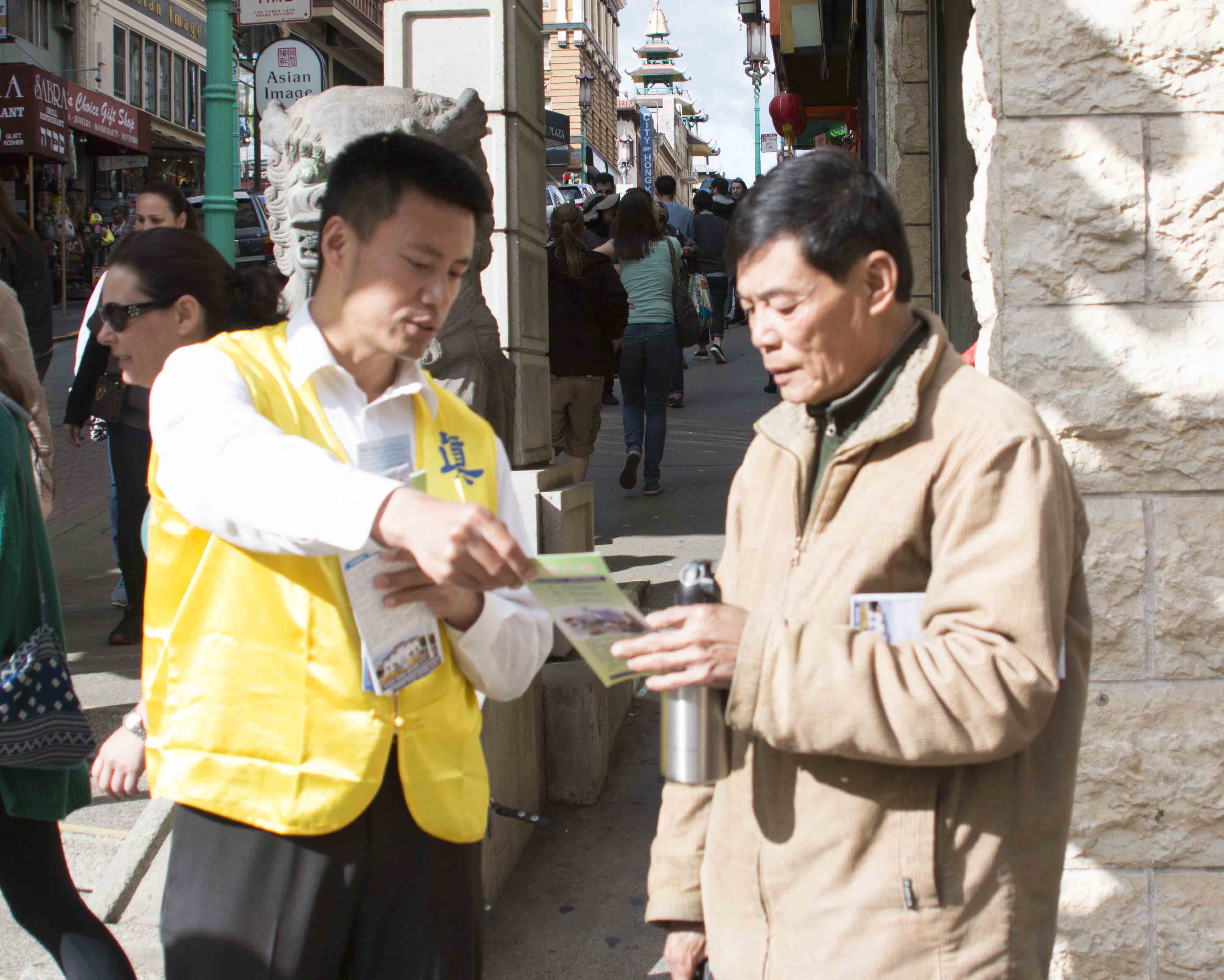 游行结束后,法轮功学员继续在旧金山中国城等真相点向民众讲清真相。