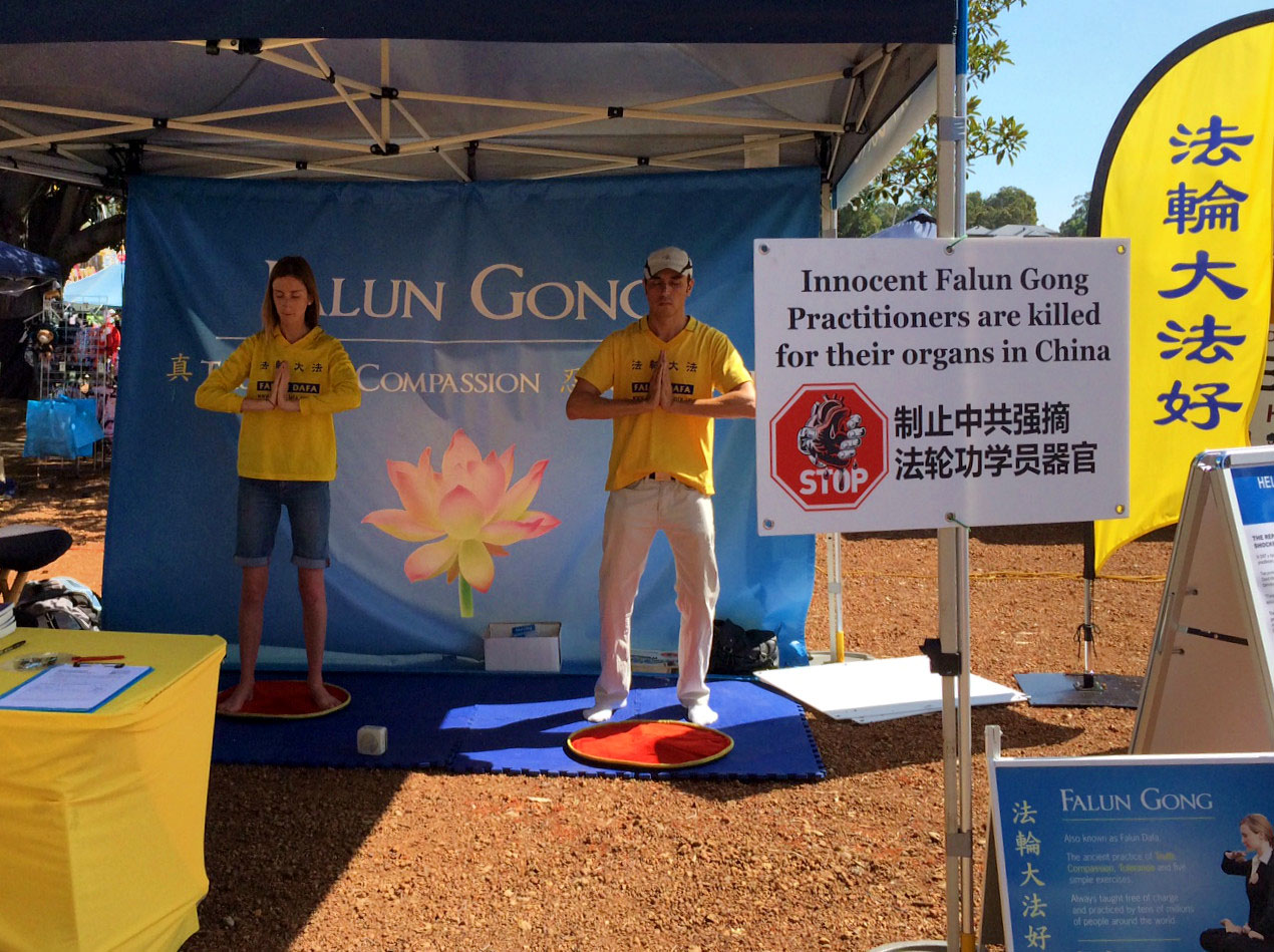 Mark Cain从迫害一开始就关注过法轮功,非常了解真相。他问学员说:“迫害已经十多年了,还像以前一样严重吗?他们是如何活摘学员器官的?”他在摊位前与学员聊了很久,详细了解了活摘器官是怎么实施的,再次签了名,拿了资料。