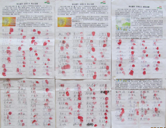 一位法轮功学员在征签时遇到兄弟俩。哥哥说发我们枪吧(注:法轮功学员和平非暴力),弟弟说谁怕共产党啊,签。兄弟俩都签上了名字。