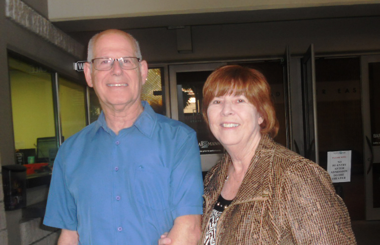 图:奥兰多芭蕾舞团艺术总监Larry Rayburn和妻子Lori Rayburn一起观看了神韵世界艺术团在奥兰多鲍勃卡尔表演艺术中心的演出
