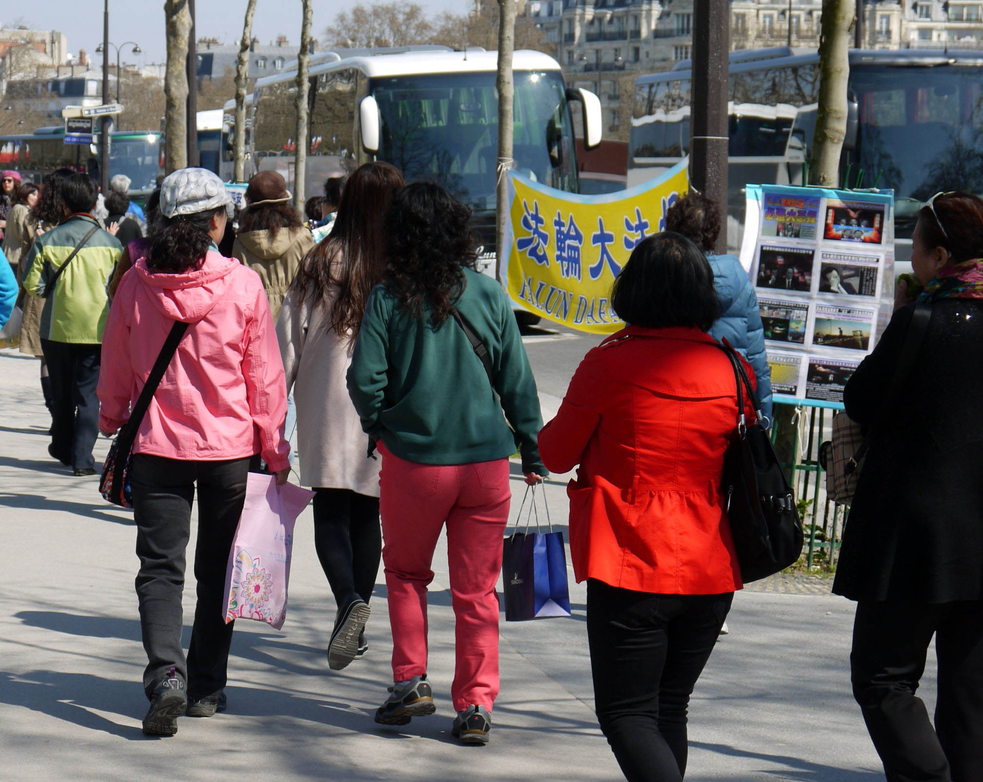 一车大陆游客在铁塔下集体留影,法轮功学员方女士站到前方说:“大陆同胞好,告诉大家一个好消息,现在明白真相的两亿大陆同胞,已经在大纪元网站登记退出了中共党团队,说明民心选择了善,远离邪恶保平安,建议大家三退保平安,做干净的中国人,希望老乡们在巴黎集体结善缘好不好?”“好!好!”大家响应着,一起登记退出了中共党团队。