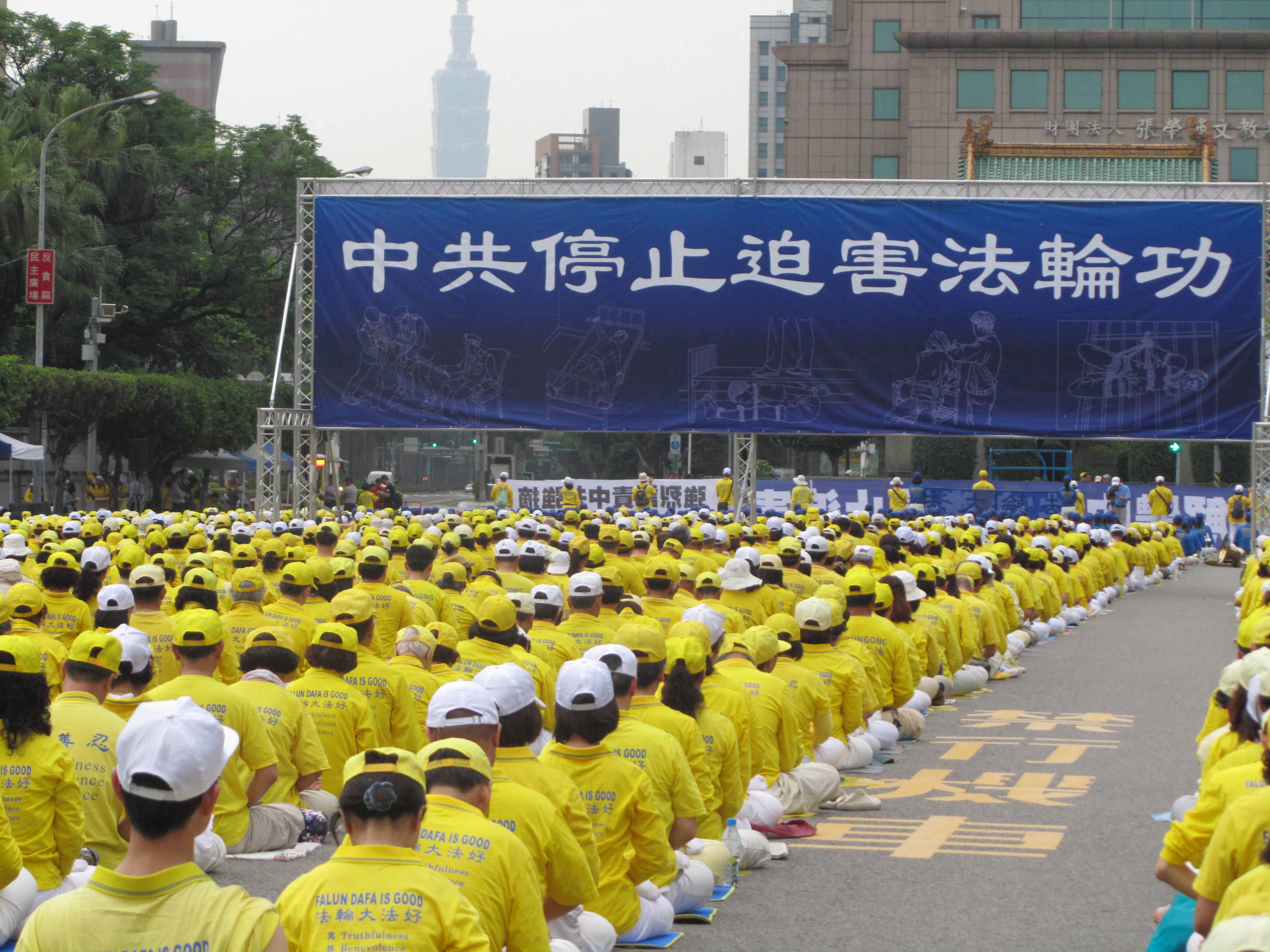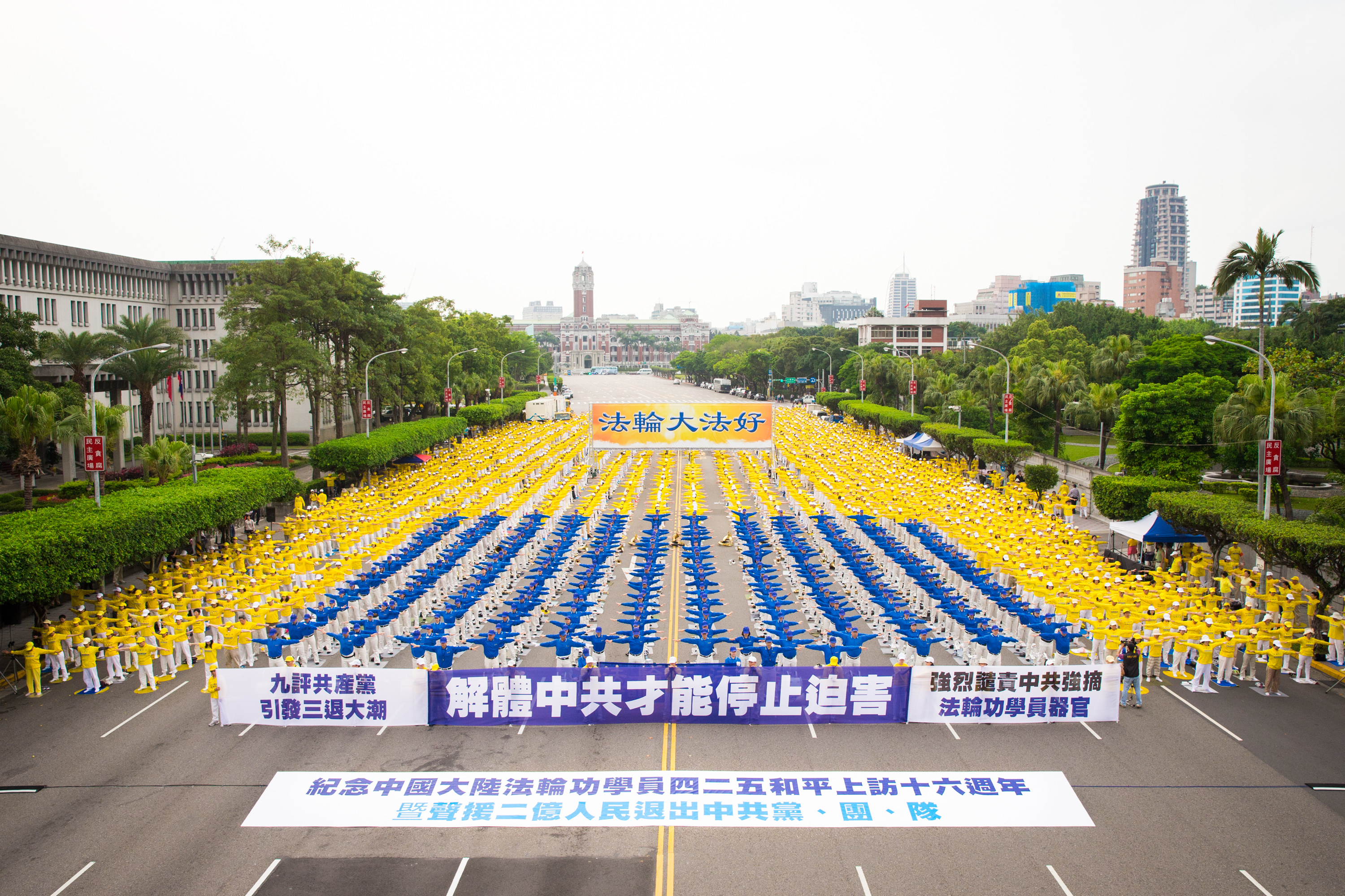 ![]() 图1-3:三千名法轮功学员于台湾总统府前凯达格兰大道上举办集会,纪念四·二五和平上访十六周年暨声援二亿中国人退出中共。 |