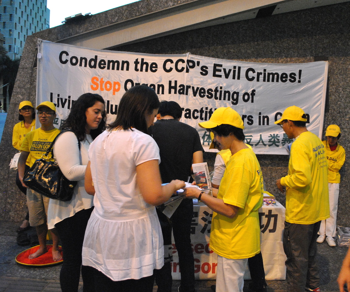 活动中,一个市民对赵女士说:谢谢你们告诉我活摘器官的事,实际上这不只是对中国人的迫害,而是对全世界人的迫害。