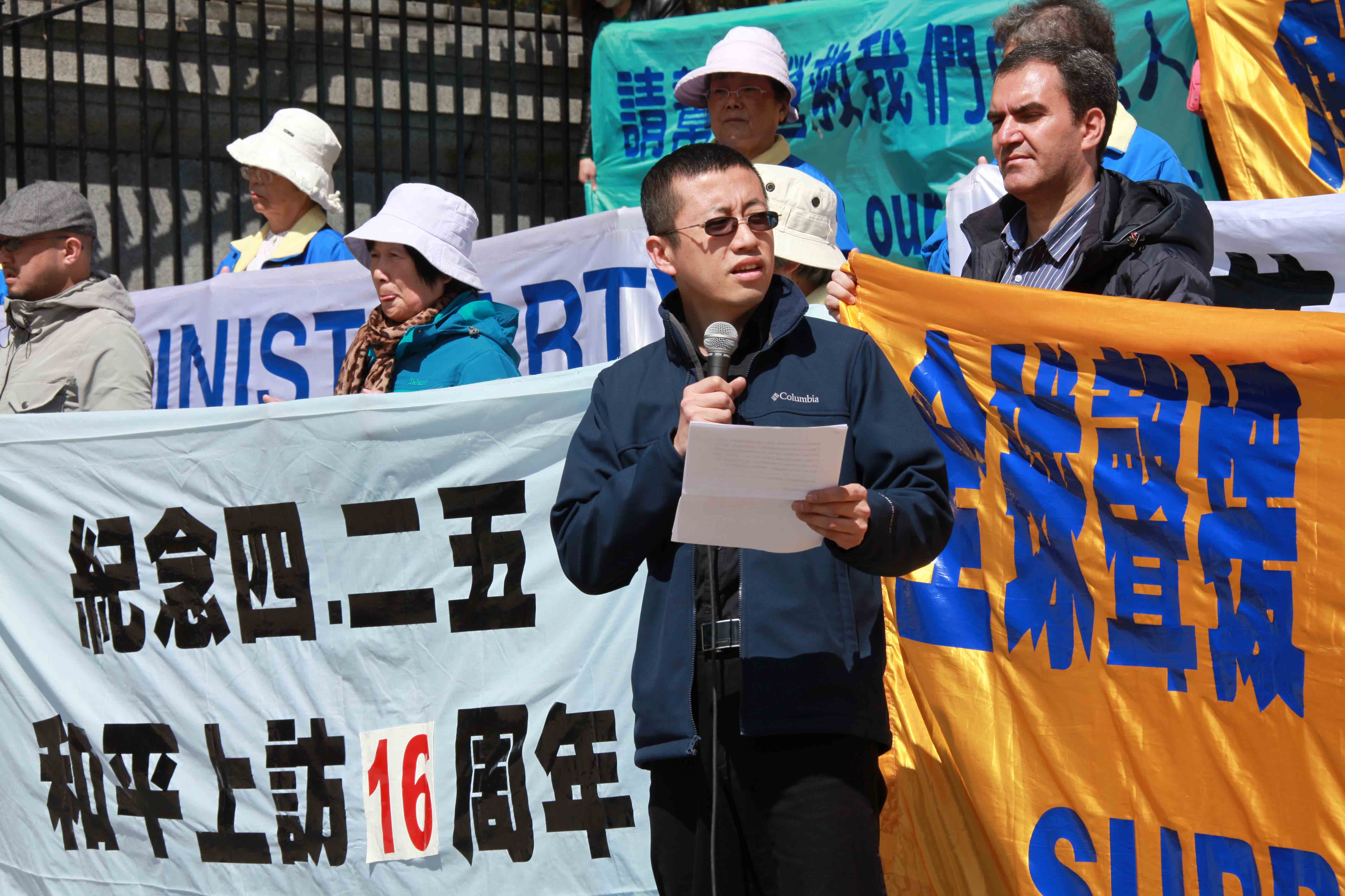 加拿大价值守护联盟代表Louis黄表示,十六年前上万名法轮功学员和平理性地表达,对中国宪法赋予的言论和信仰自由的守护,开启中国民间团体和平维护权益的先河。中共的历史就是一部杀戮和欺骗的历史,环境和道德处于崩溃,退党就成为任何有理性的中国人的选择。现在有两亿人退党,但是心里已经退党的人何止两亿,将来随着退党大潮和历史发展,中共必然走入历史的坟墓中去。去年加拿大总理哈珀在渥太华共产主义受害者纪念碑筹建会议上表示,共产主义是二十世纪人类最大的瘟疫。我们反对任何人威胁人类基本自由的价值。加拿大不仅需要共产主义受害者纪念碑,法轮功学员不屈不挠,为了自己的信仰,忍受巨大痛苦和迫害,坚持信仰到底的精神, 我们加拿大还需要法轮功学员受难者纪念碑,纪念那些为了信仰坚持信仰到底的精神。