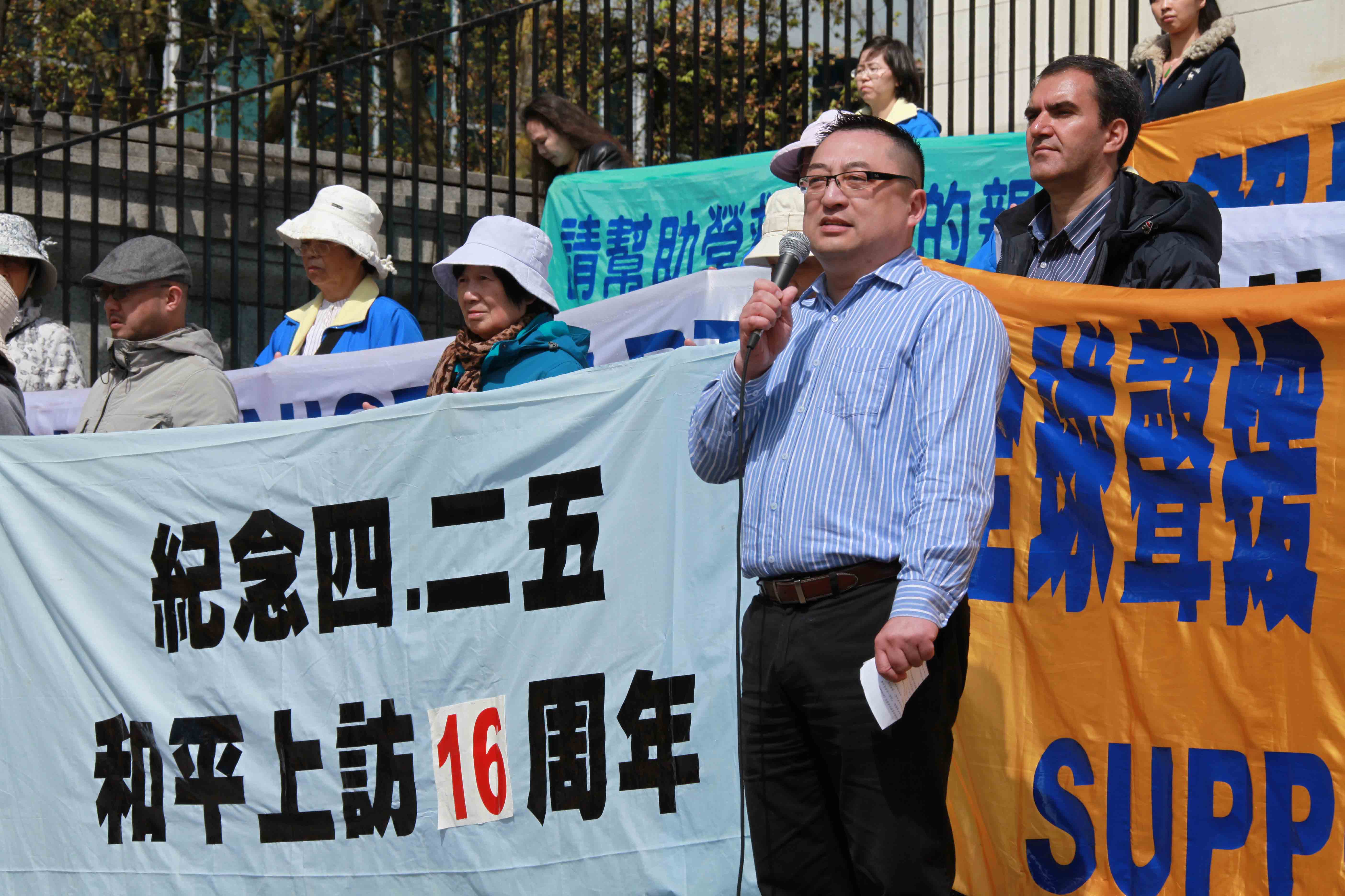 ![]() 图3:民主中国阵线驻温哥华代表Eric 陈在集会发言 |