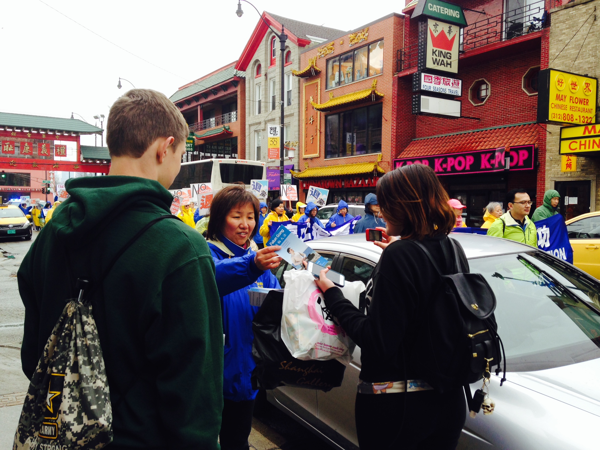 ![]() 图1: 二零一五年四月二十五日,美中地区法轮功学员在芝加哥举行游行,声援二亿人三退 |