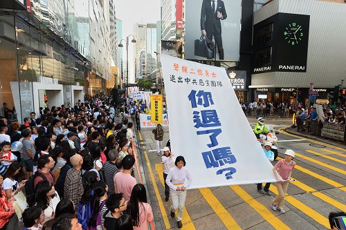 整个纪念“四•二五”十六周年及声援二亿人退出中共党、团、队组织的集会游行活动,在下午五点左右,游行队伍抵达尖沙咀天星码头后结束。