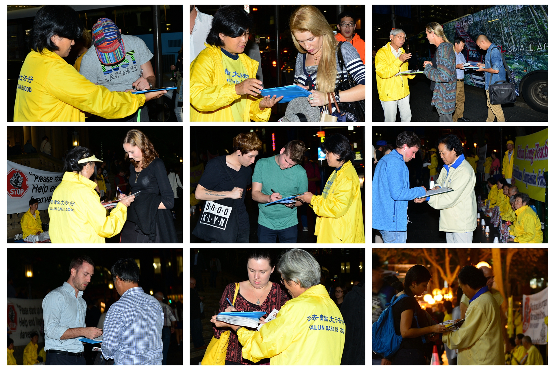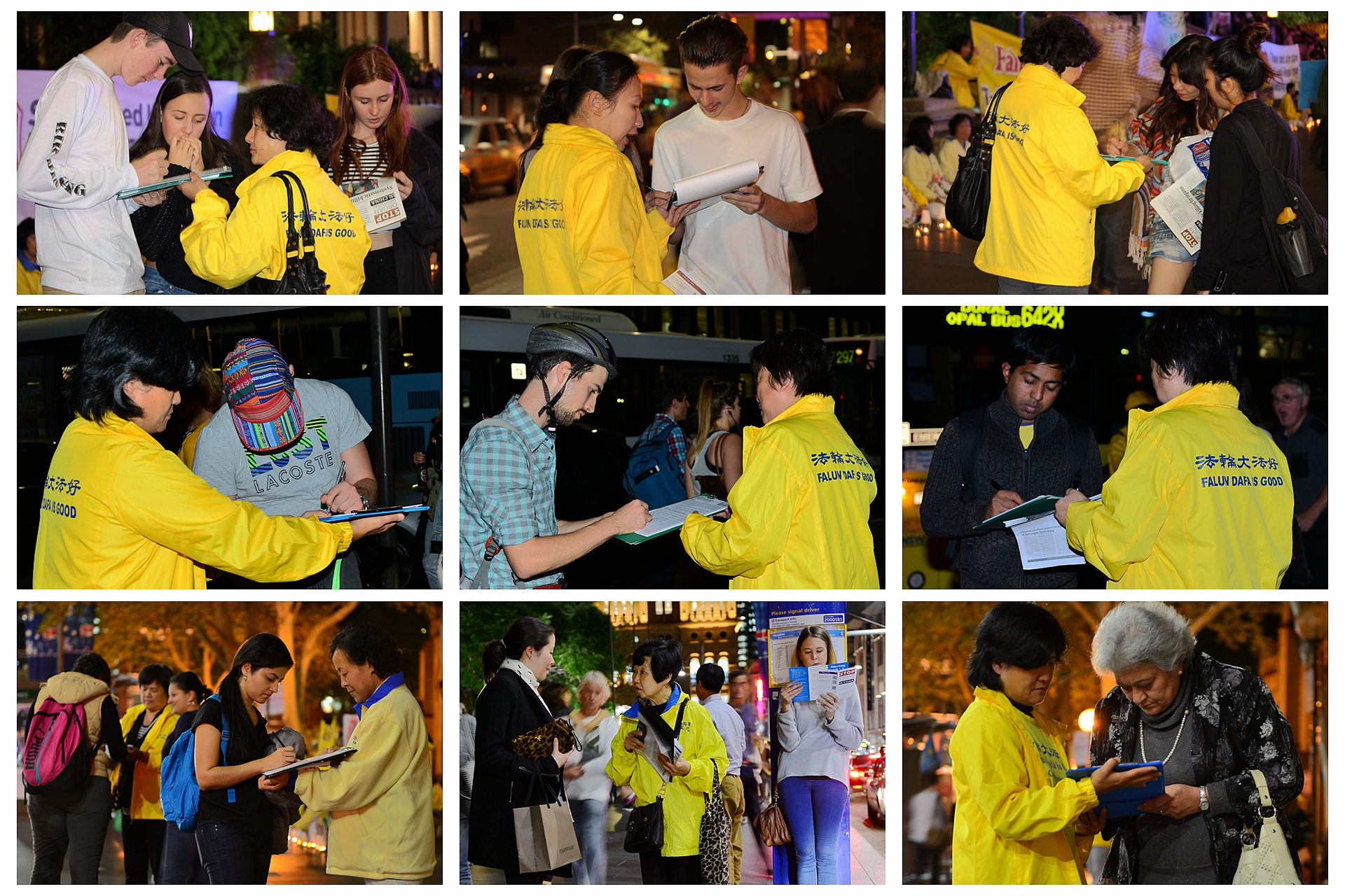 ![]() 悉尼主流民众纷纷驻足在向联合国人权机构递交的请愿书上签名制止中共活摘器官 |