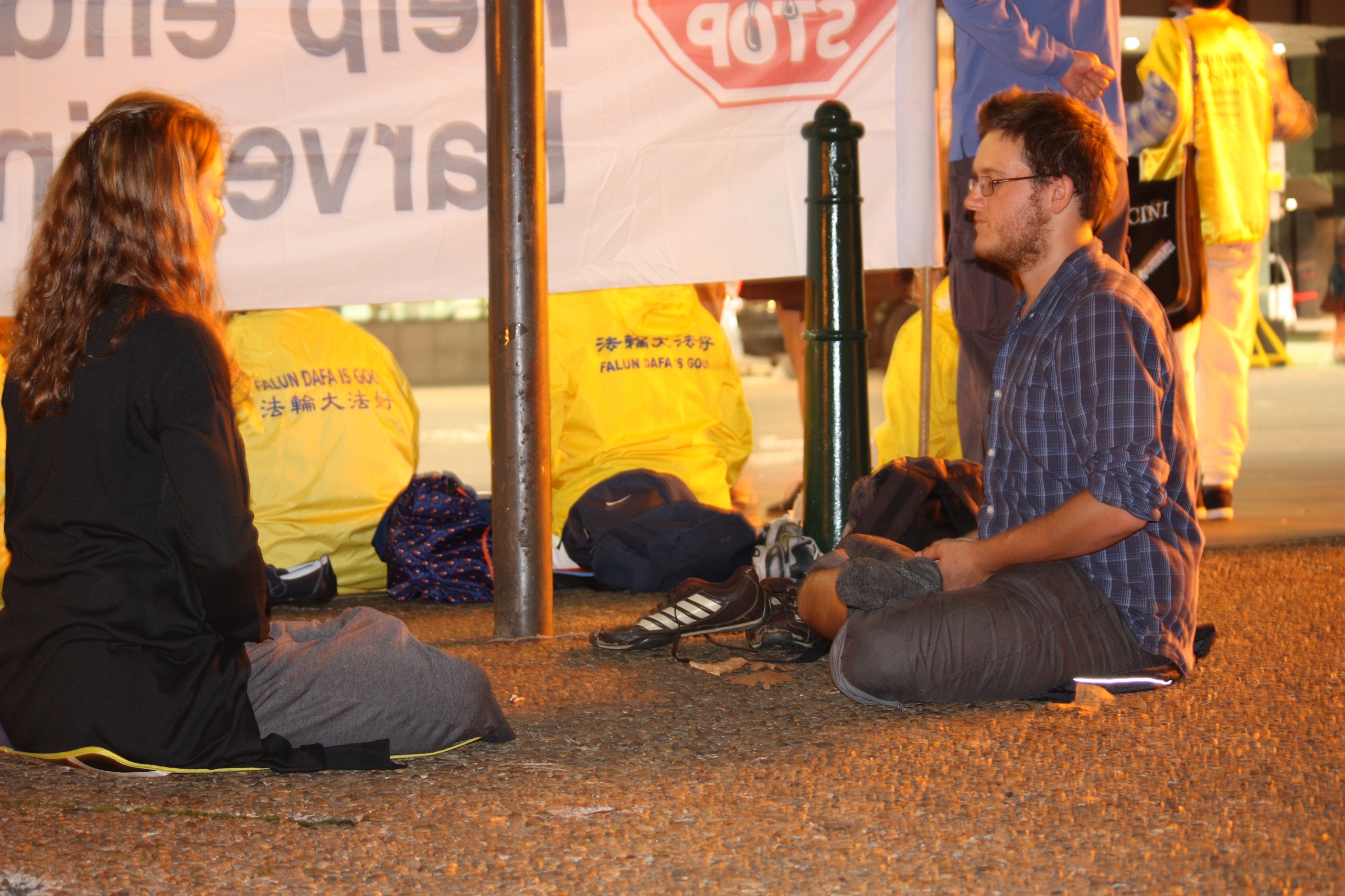 许多主流社会民众驻足了解真相,他们为中共暴政感到愤慨,对被迫害致死的法轮功学员和正在被非法关押和恐遭“活摘器官”的学员感到担心和忧伤。他们中有的人得知如此骇人听闻的残忍迫害后当场落泪,无法言语;有的拿过法轮功学员手中的资料站在那儿派发给路人,希望能够尽力帮助停止迫害;还有的自己在停止迫害征签表上签名后,多拿一些资料去派发给路人或亲朋好友。