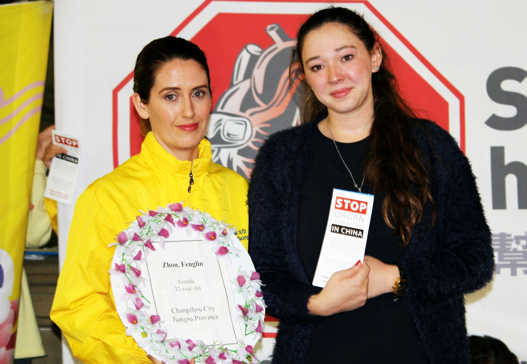 切丽(Cheree Toka)和艾登(Aiden Butfild)在悉尼唐人街转角乔治街上的制止中共活摘法轮功学员器官牟利的真相点得知法轮功学员所遭受的迫害后,主动拿起真相传单向过路民众讲真相,呼吁人们签名反迫害。他们都认为,活摘器官是反人类和反人权的行为,并表示:我们来到乔治街,在这里呆上几个小时,希望能够帮助你们(法轮功学员),通过让其他过路行人签名来帮助制止在中国活摘法轮功学员器官的罪行。