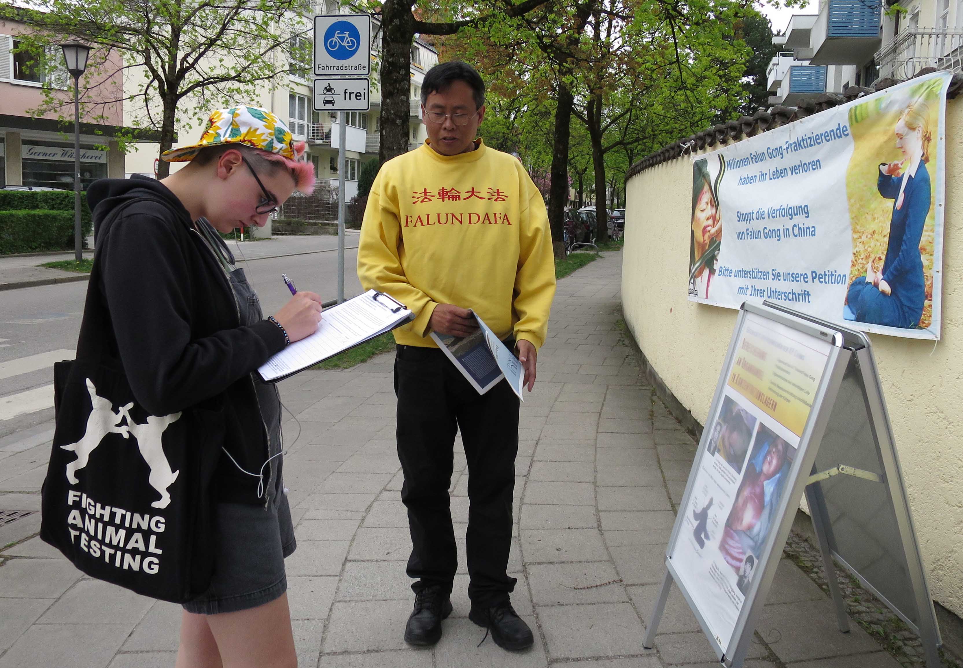 签了名制止中共迫害法轮功的德国民众常常会加上一句,希望法轮功学员坚持下去、祝法轮功学员好运气。