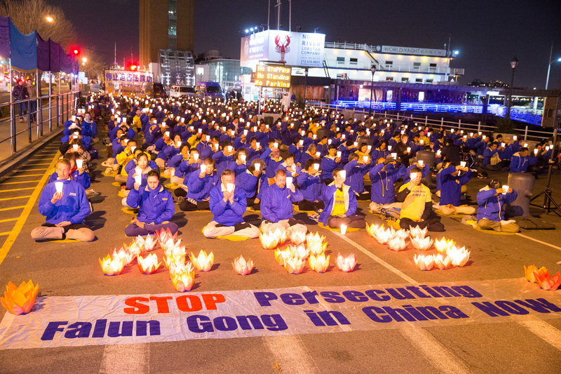 ![]() 图1-4:纽约法轮功学员在中领馆前烛光静坐,纪念“四•二五”十六周年。 |