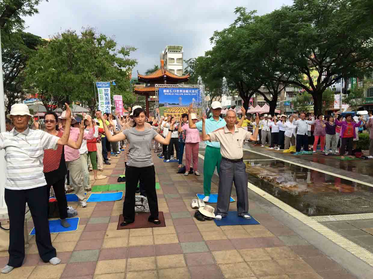 庆祝活动从下午三时开始,法轮功学员集体炼功的祥和场面展现着法轮大法的美好与殊胜。炼功场旁的“正法之路图片展”告诉民众法轮大法弘传世界一百多个国家与地区的盛况。五套功法的义务教功与摺纸莲花的教学,同样吸引民众们争相参与学习。