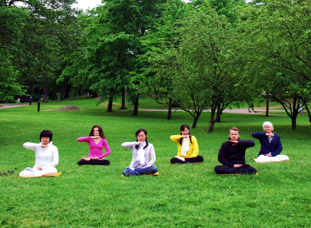 ![]() 芬兰法轮功学员日常在公园打坐炼功 |