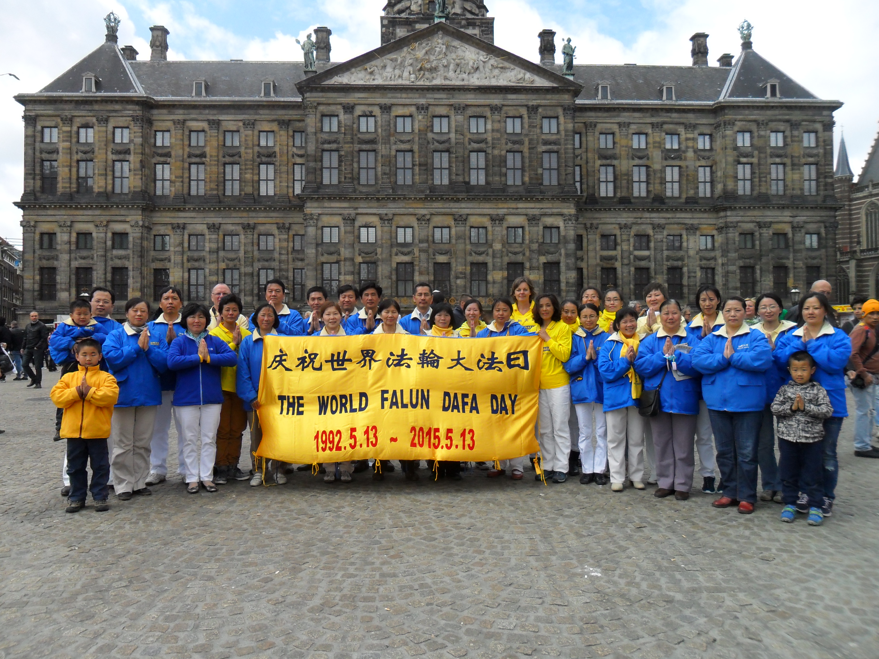 ![]() 法轮功学员在荷兰首都阿姆斯特丹王宫前达姆广场庆祝世界法轮大法日 |
