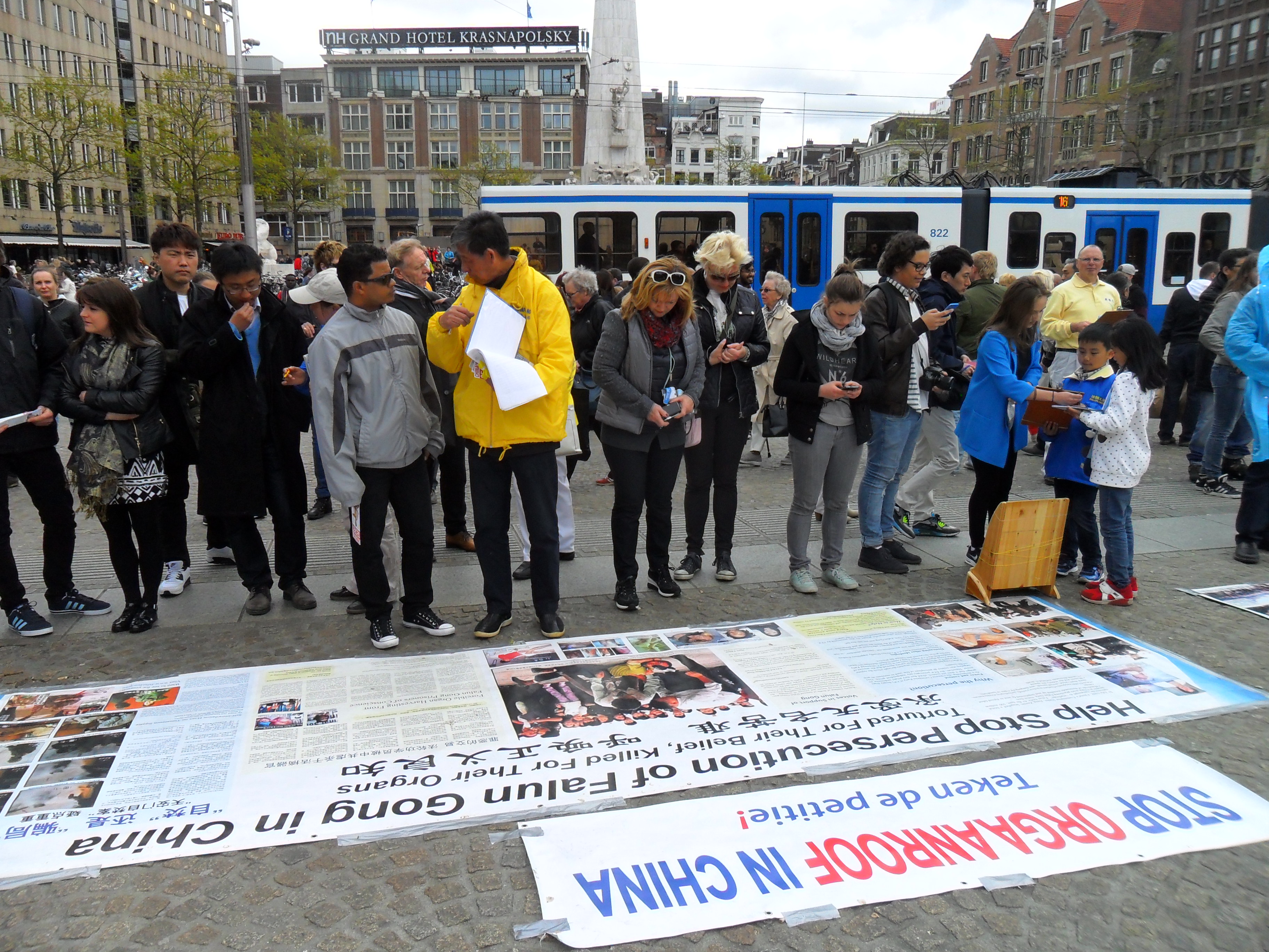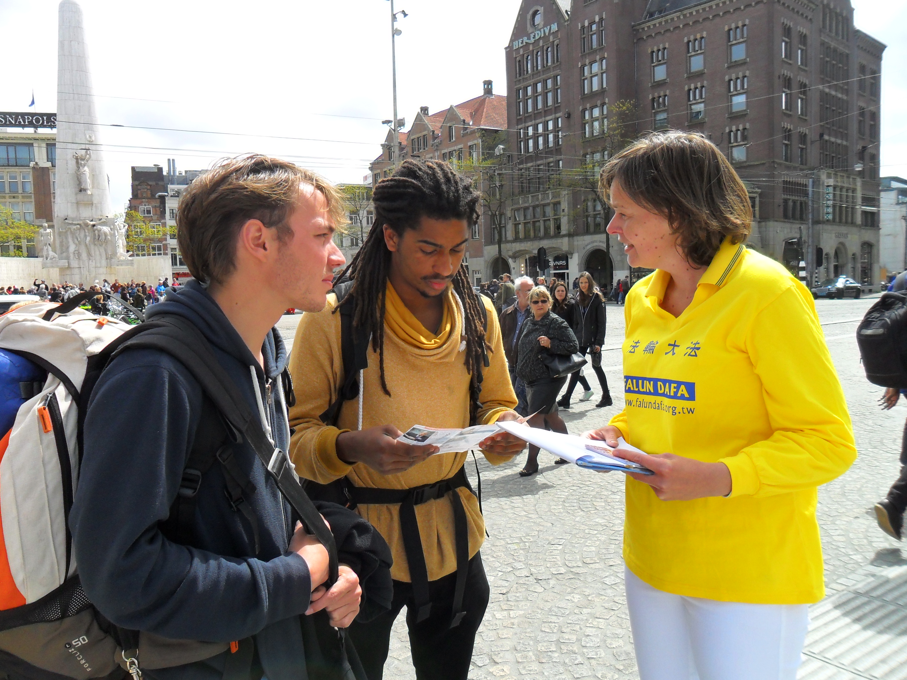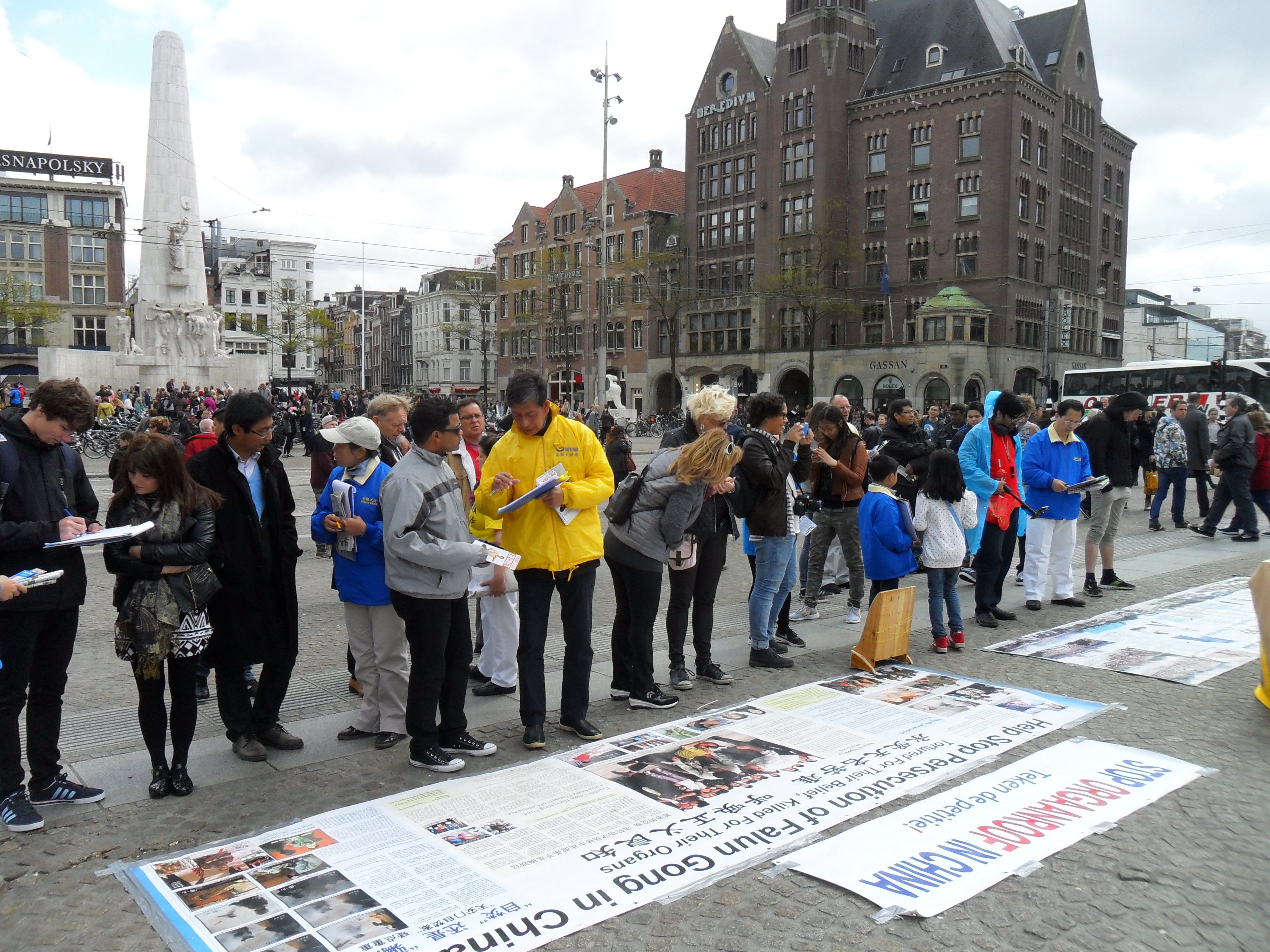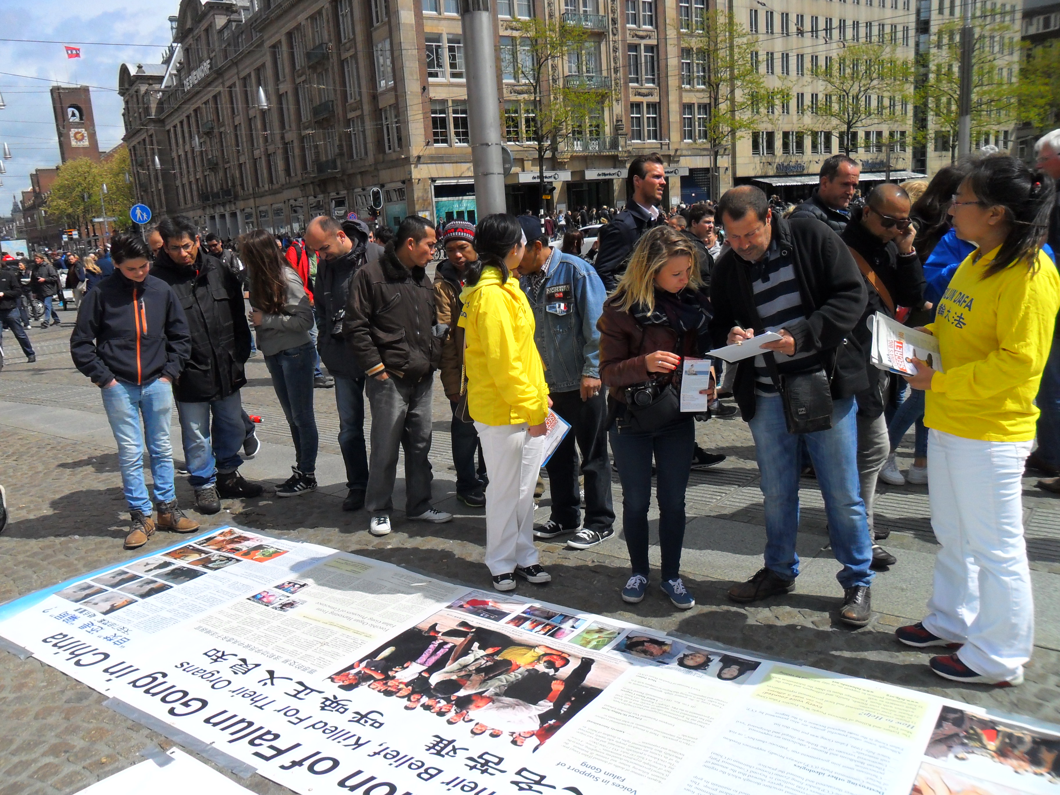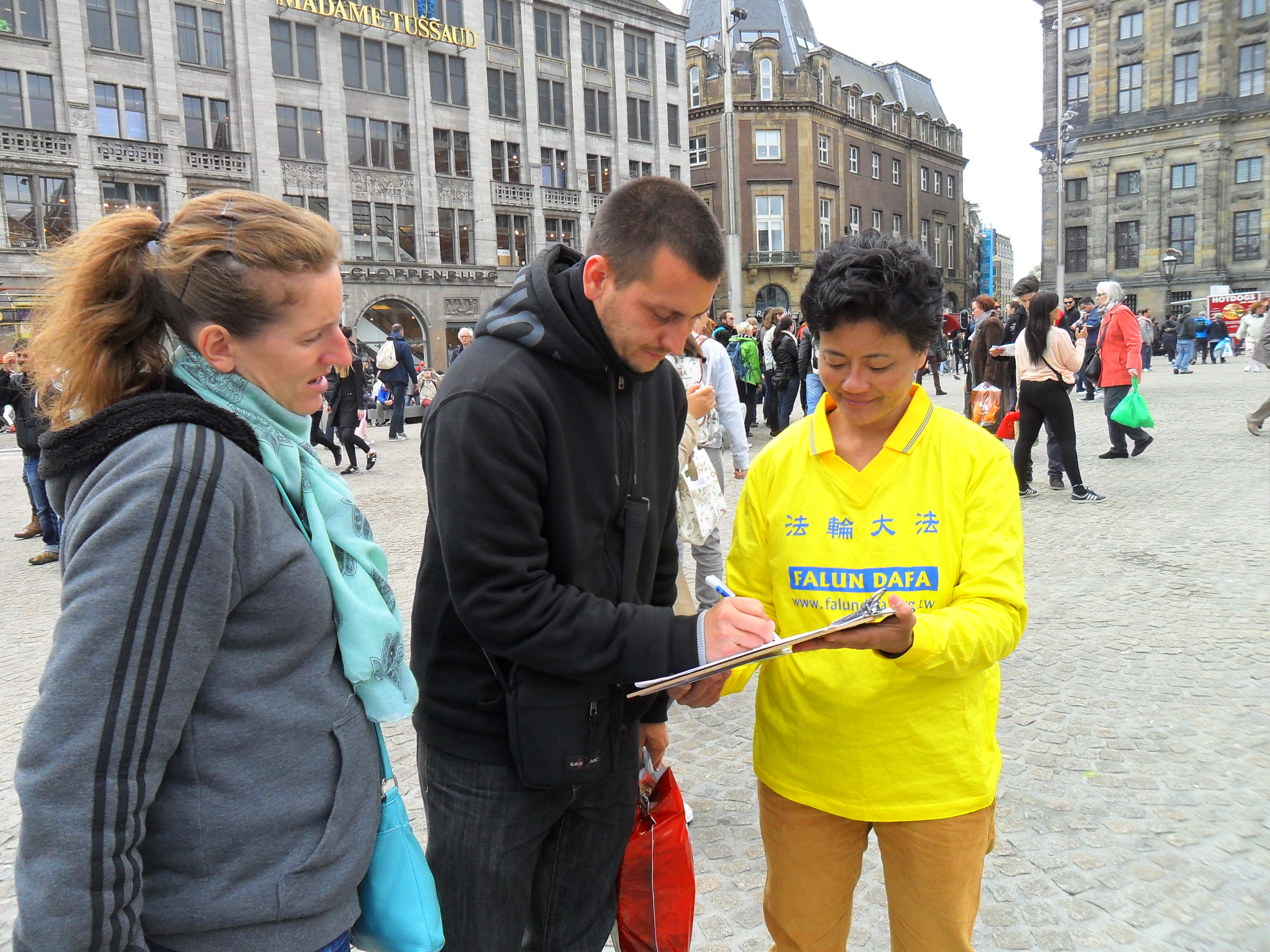 ![]() 阿姆斯特丹王宫前达姆广场上,游客签名支持法轮功反迫害 |