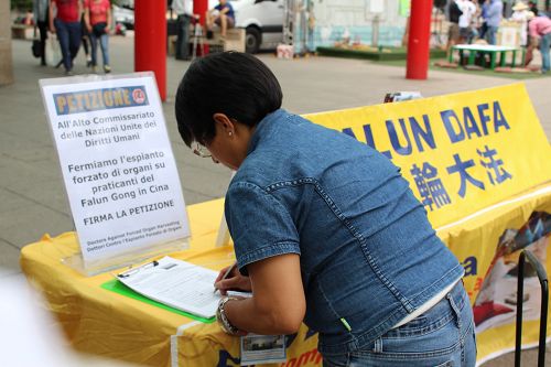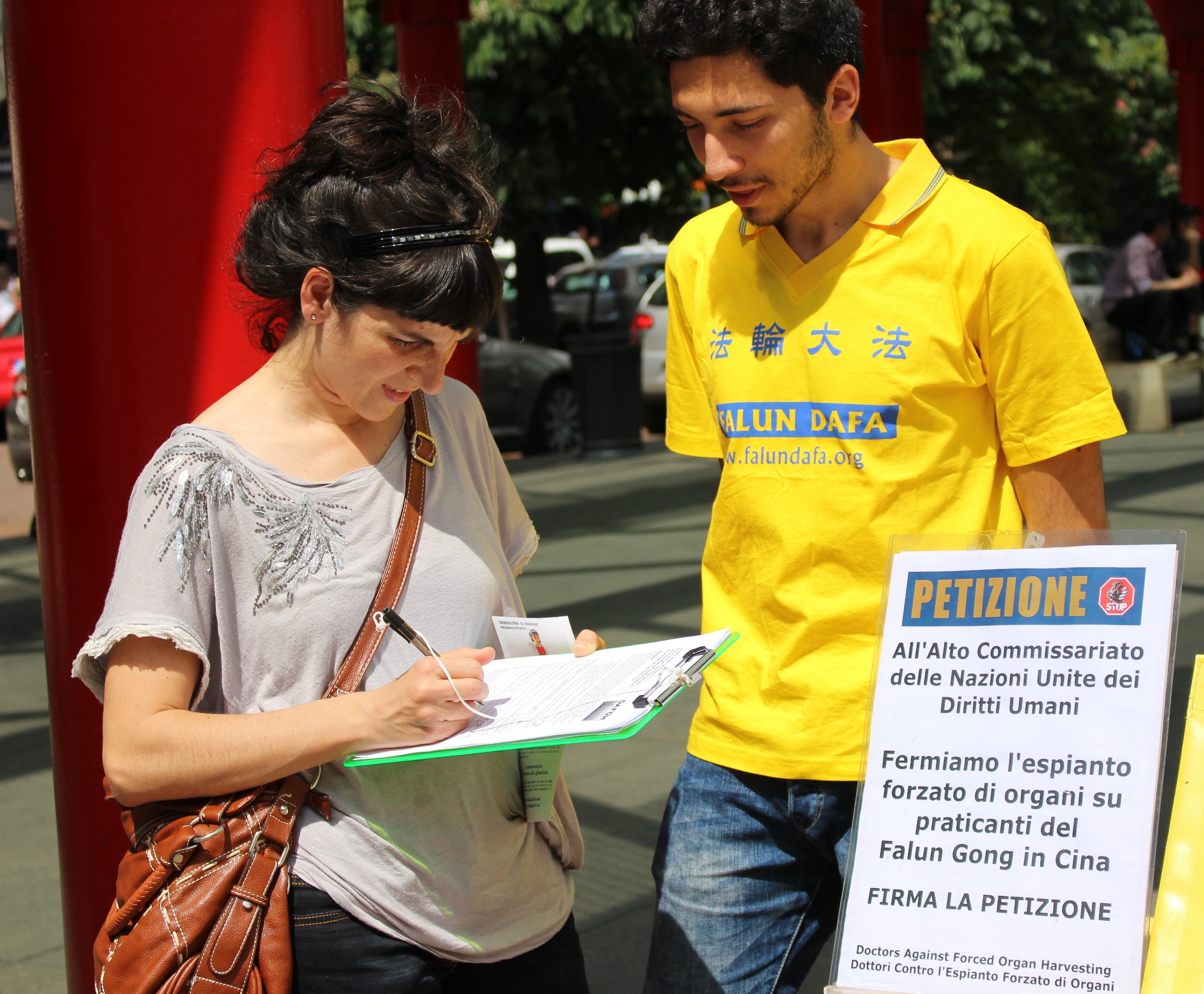 学员在街头炼功和讲真相,向世人展现大法修炼人的平和善良与坚韧气度。整个活动过程中,不断有路人上前,主动了解什么是法轮功以及发生在中国的迫害真相。良知觉醒后的人们纷纷签名支持法轮功,在制止中共活摘法轮功学员器官的征签簿上留下了他们的正义心声。