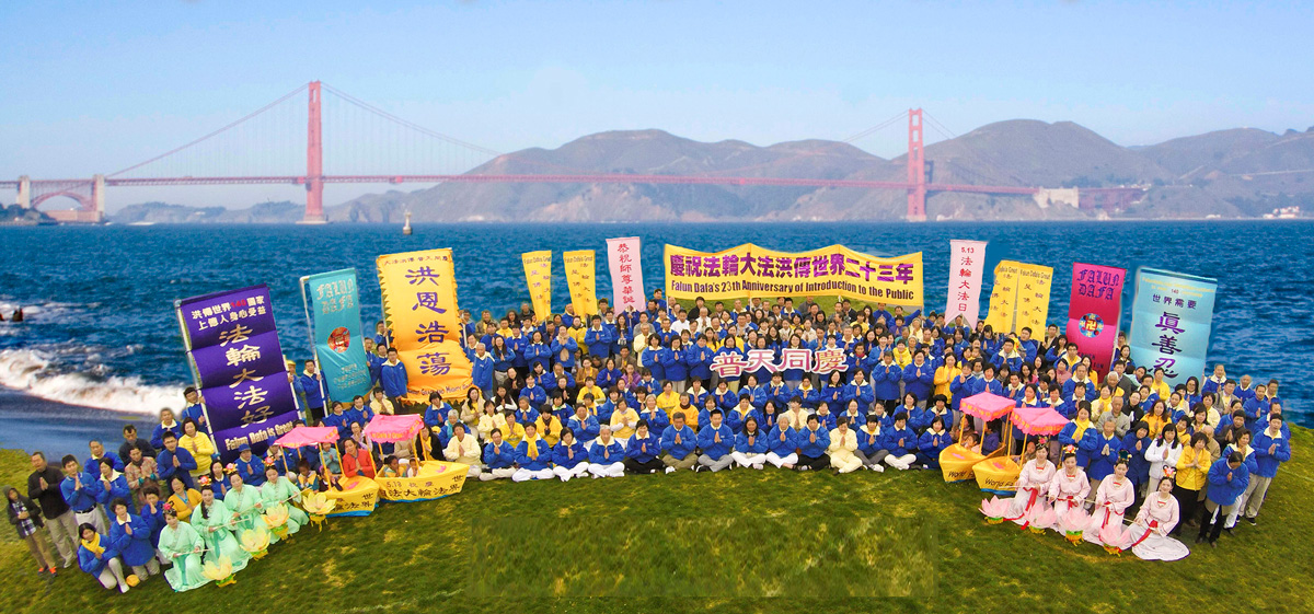 ![]() 图:法轮功学员在金门大桥附近恭祝师父生日快乐 |