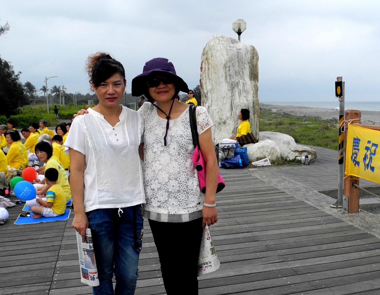 ![]() 图3:台东市地政士公会前理事长廖月瑛(左)祝愿法轮功弘扬全世界。 |