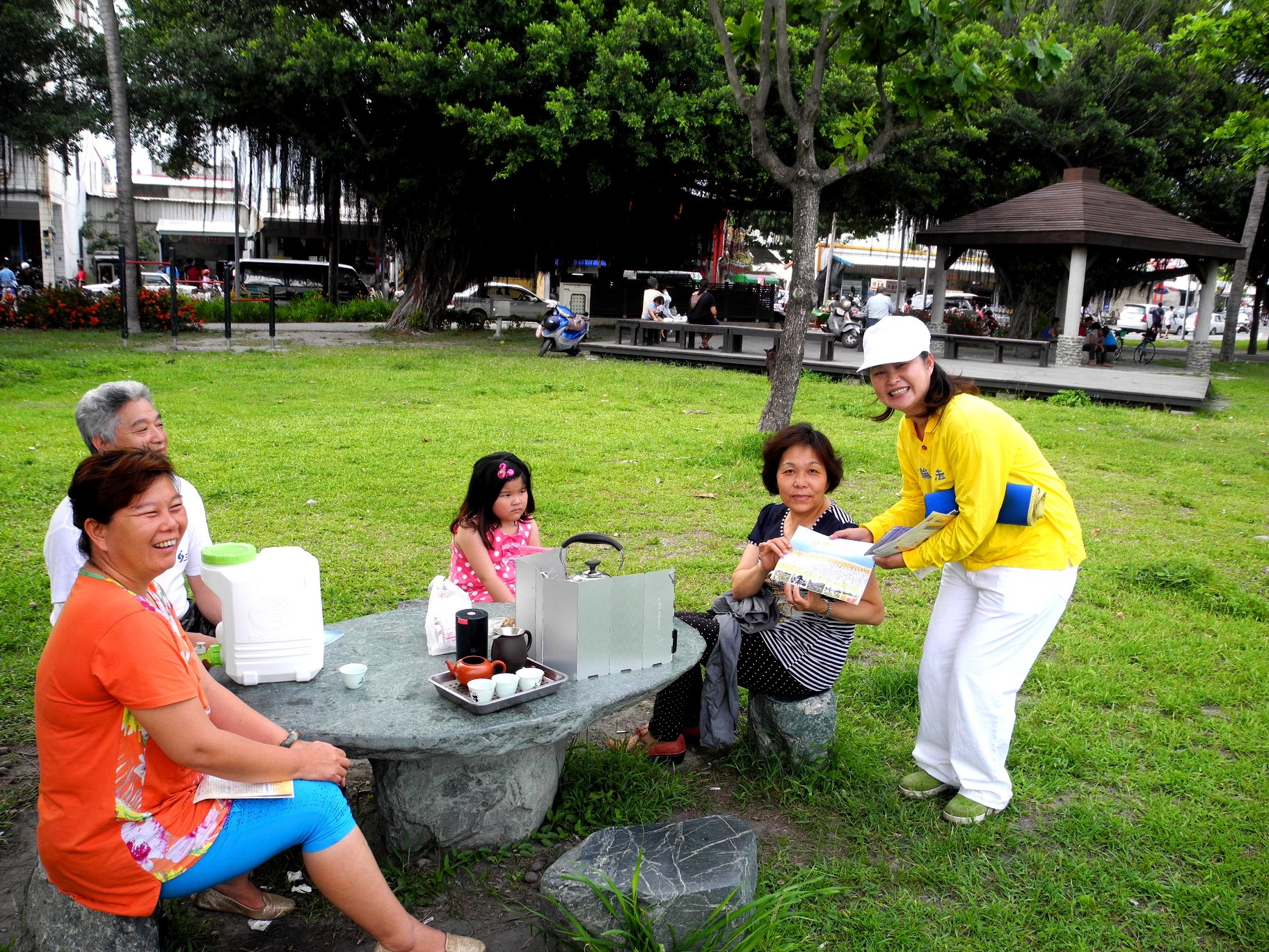 ![]() 图6:法轮功学员将大法美好传递给台东海滨公园休闲的民众。 |
