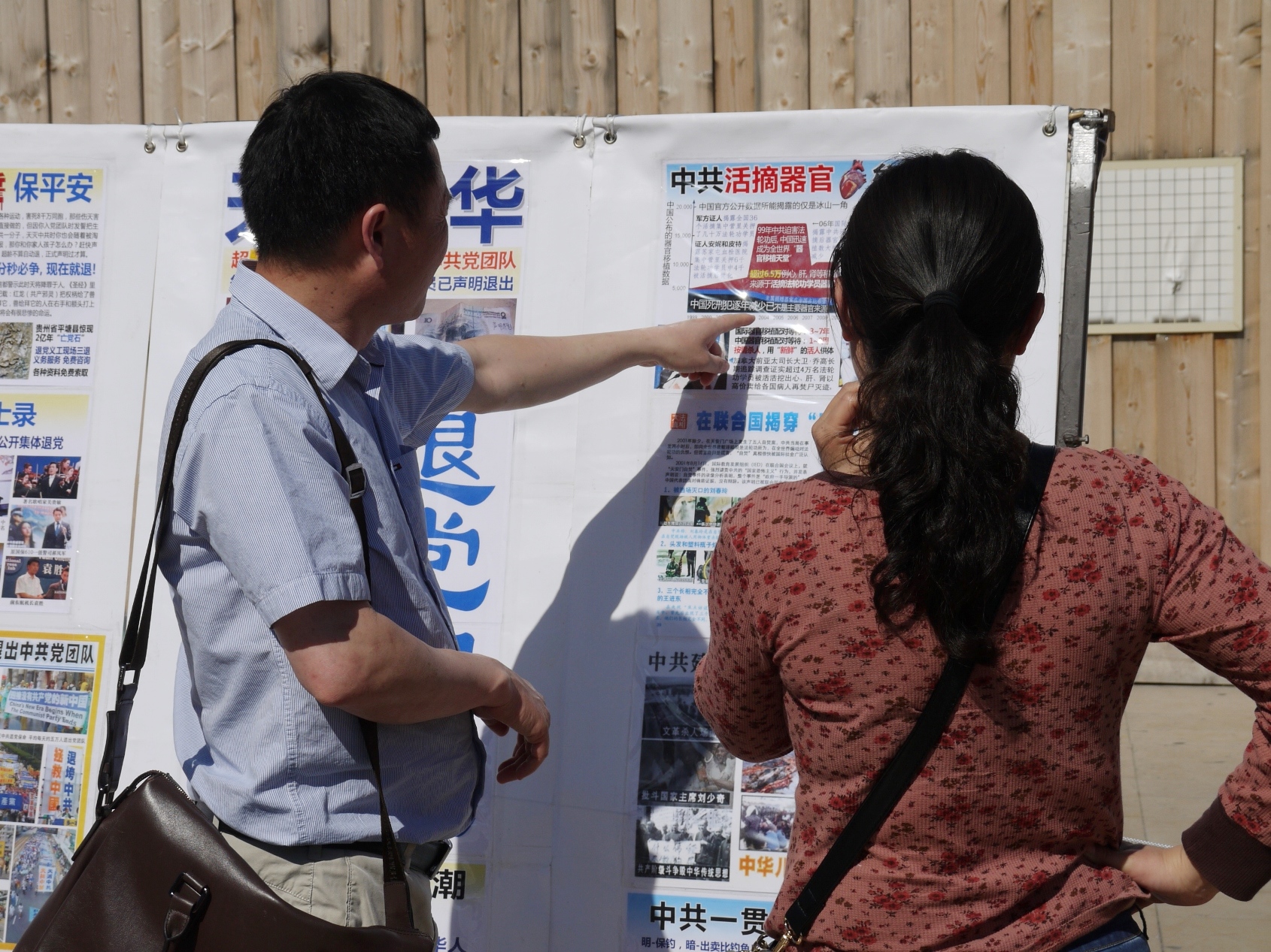 游人中不乏大陆游客,一些大陆游客看过法轮功真相展板后,在学员的帮助下办了三退,然后高兴地离开。