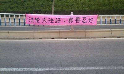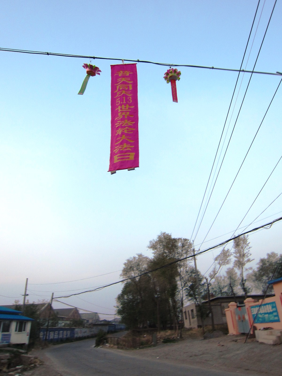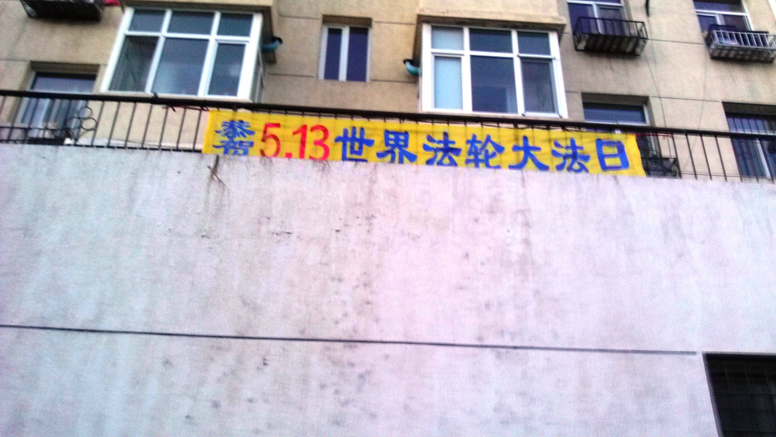 庆祝5.13法轮大法日,辽宁地区悬挂真相条幅