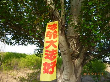 513大法日前夕,北京公路和旅游景点出现大量的庆祝513大法日真相条幅和真相不干胶
