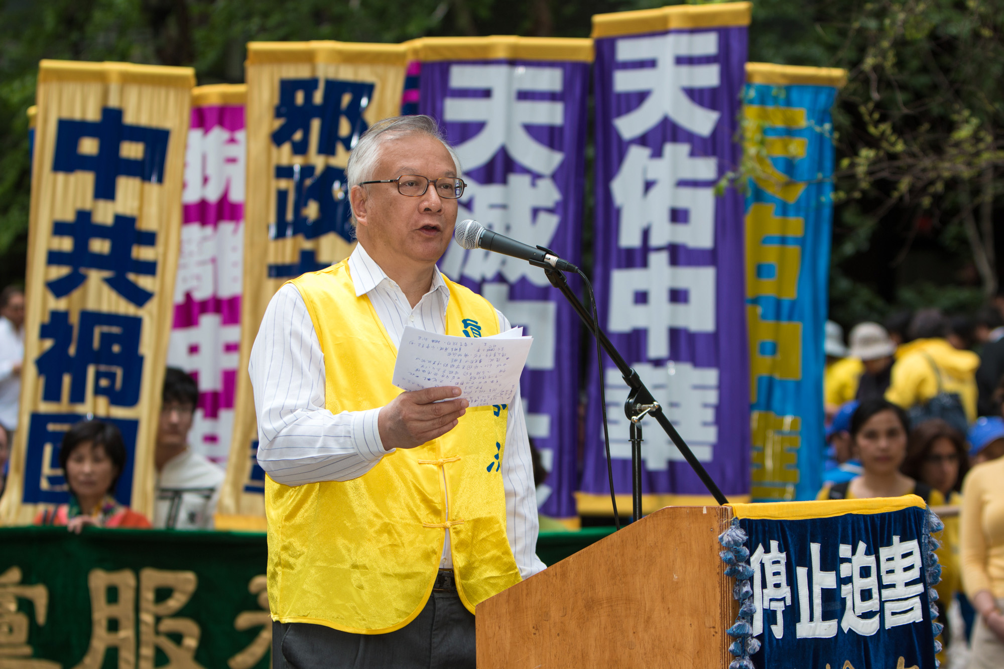 他还说:“梁振英当局在近几年来不断地压制香港的民众,也让越来越多的香港市民觉醒,他们纷纷站出来向中共说‘不’,他们也越来越明白,法轮功学员所坚持的‘真善忍’普世价值是人类走向未来的根本保证。最近有些政界的人士这样表明,中共在香港掀起的那么多的‘假恶暴’的氛围之中,最需要法轮功的‘真善忍’的精神来拨乱反正。我们在这里呼吁,全世界的政府与民众,都站出来,制止中共的迫害,促成迫害的结束、中共的解体。”