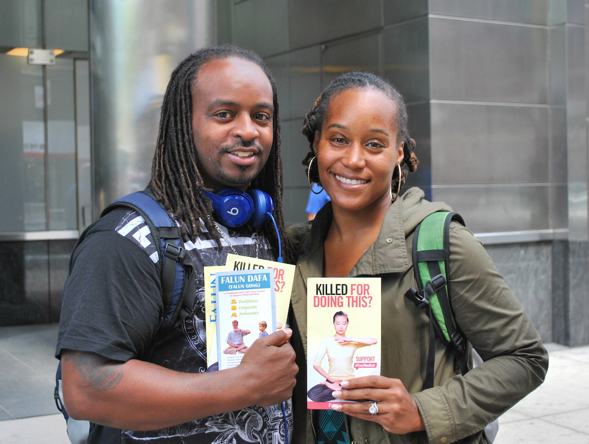 来自瑞典的音乐教师Sekou Souhuru说:“这里是你们游行的最佳地点,因为纽约有很多人,你有这个权利争取和平与人权。人们会倾听,能让你把事情做好。这是我第一次听说法轮大法,我会去深入了解,因为我喜欢精神层面的东西,我看到你们非常祥和,也非常漂亮。”