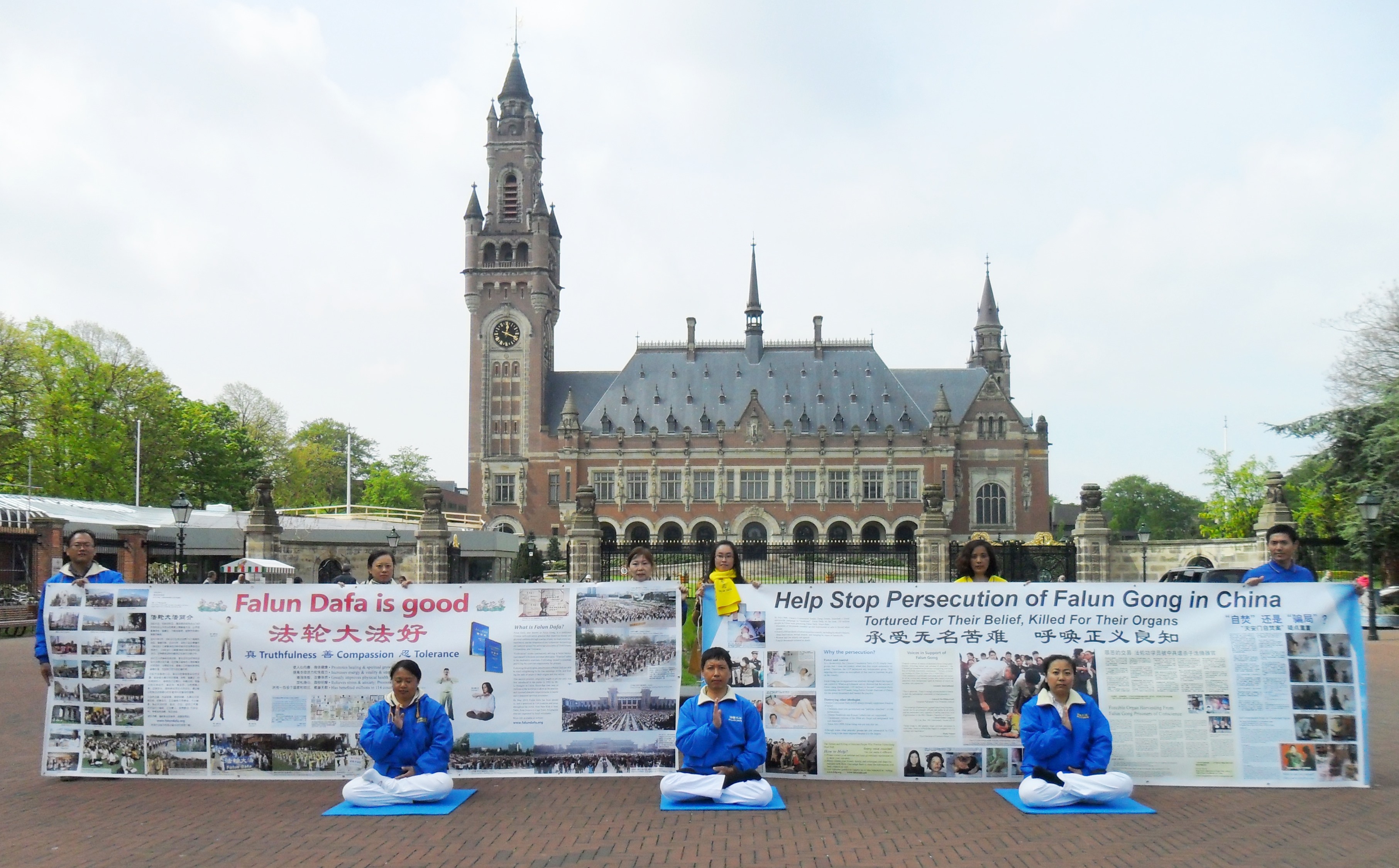 【明慧网二零一五年五月十九日】 二零一五年五月十七日,为了纪念法轮大法弘传二十三周年,荷兰学员来到荷兰行政首都海牙国际法庭门前弘法,向游客展示法轮大法弘传世界图片展板。