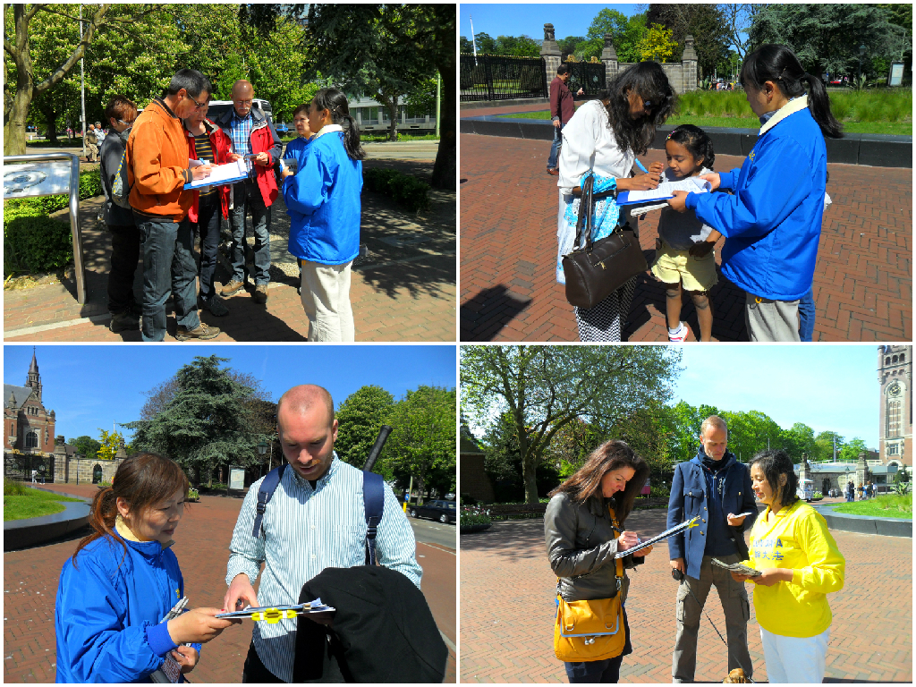 国际法庭又叫和平宫,也是国际著名的旅游景点,荷兰学员借此举办的征签讲真相活动,让更多的游客了解真相,他们纷纷签名支持反迫害,让中国公民拥有一个和平信仰的环境。