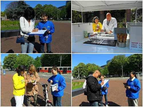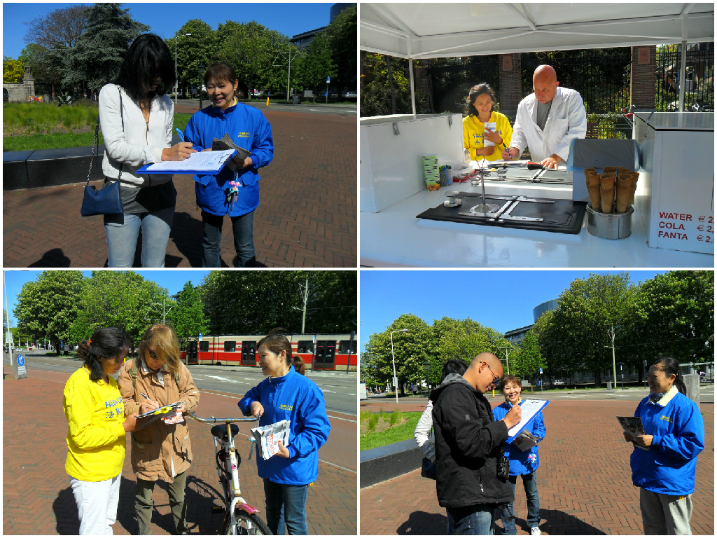 图2-4:荷兰学员在海牙国际法庭前举办讲真相征签活动