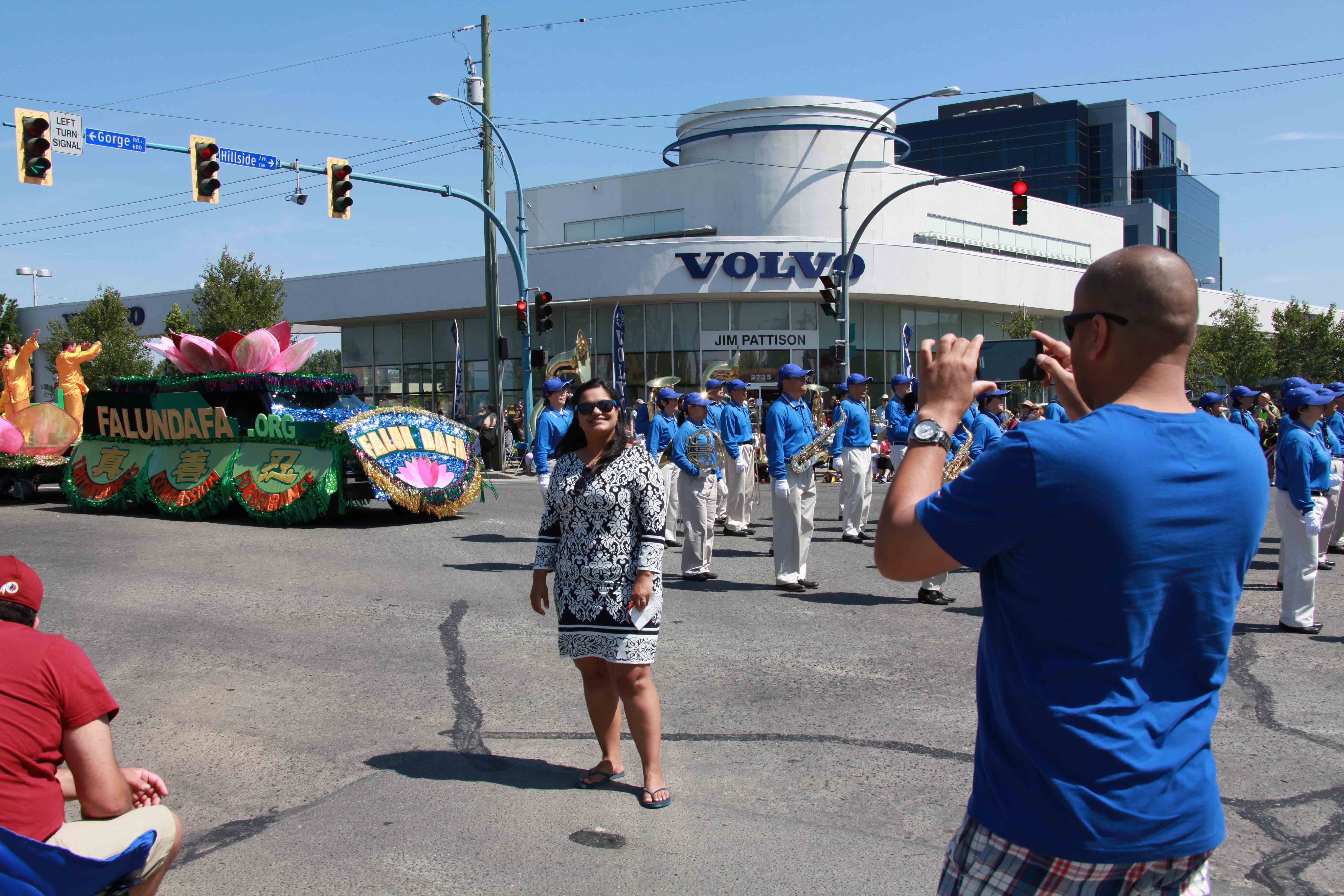 陈女士是新移民来加拿大才三年,她和儿子特意从温哥华坐船来维多利亚市看游行,陈女士对着法轮功学员的队伍鼓掌,她表示,游行很热闹很棒,她每年都来看,游行很活泼,陈女士表示:“炼法轮功是合法的,法轮功学员的队伍很好哇,很好哇,我就是这感觉。”