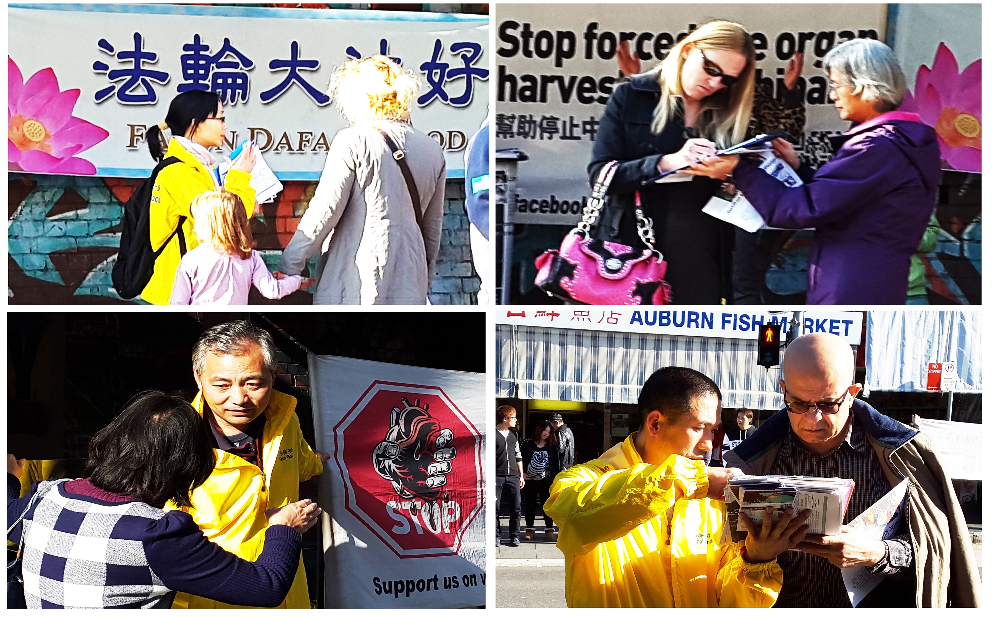 ![]() 图1:法轮功学员在悉尼奥本(Auburn)市中心的主街上举办反迫害讲真相活动 |