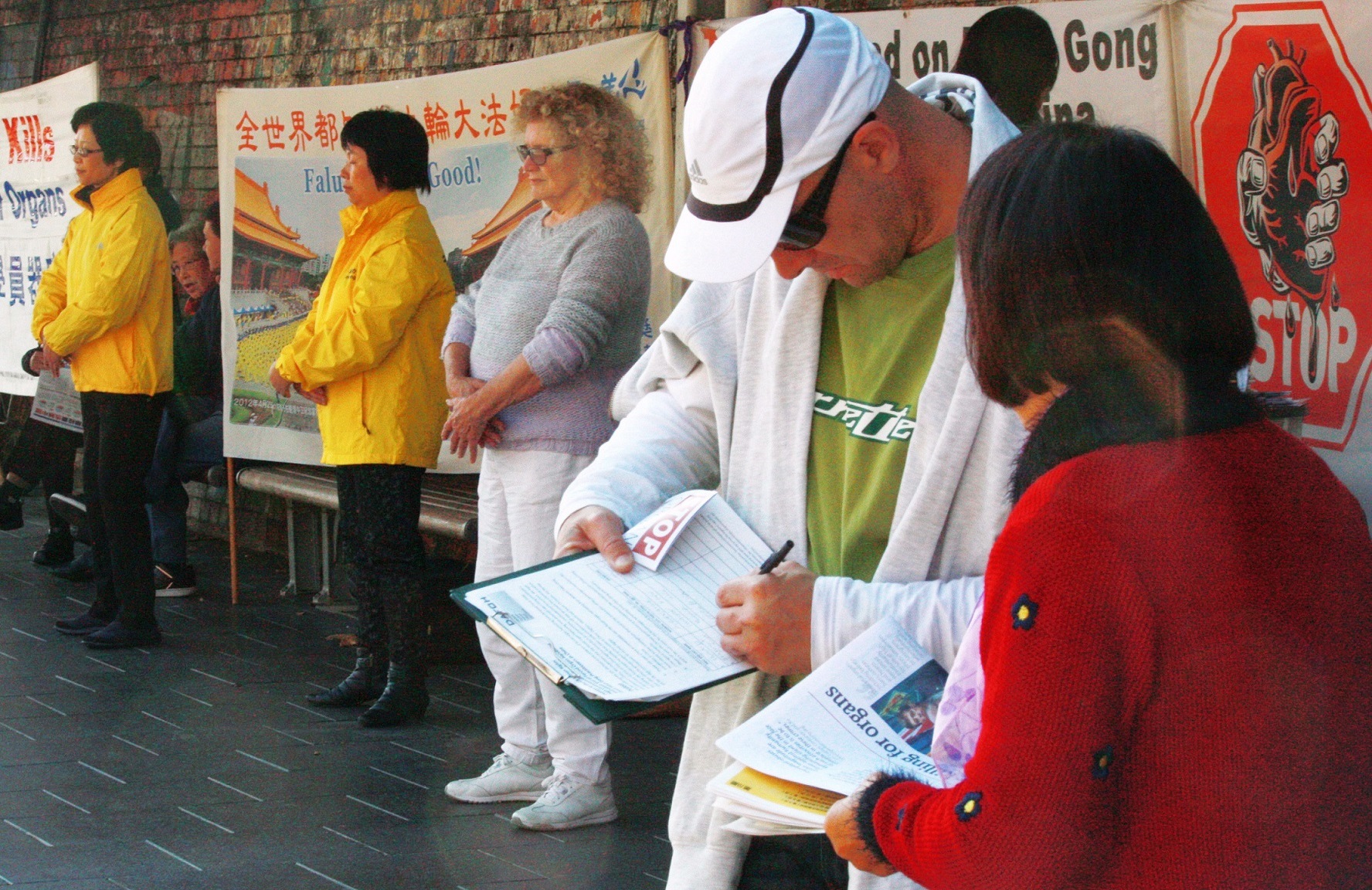 ![]() 图2-3:悉尼奥本当地民众签名谴责中共活摘法轮功学员器官 |