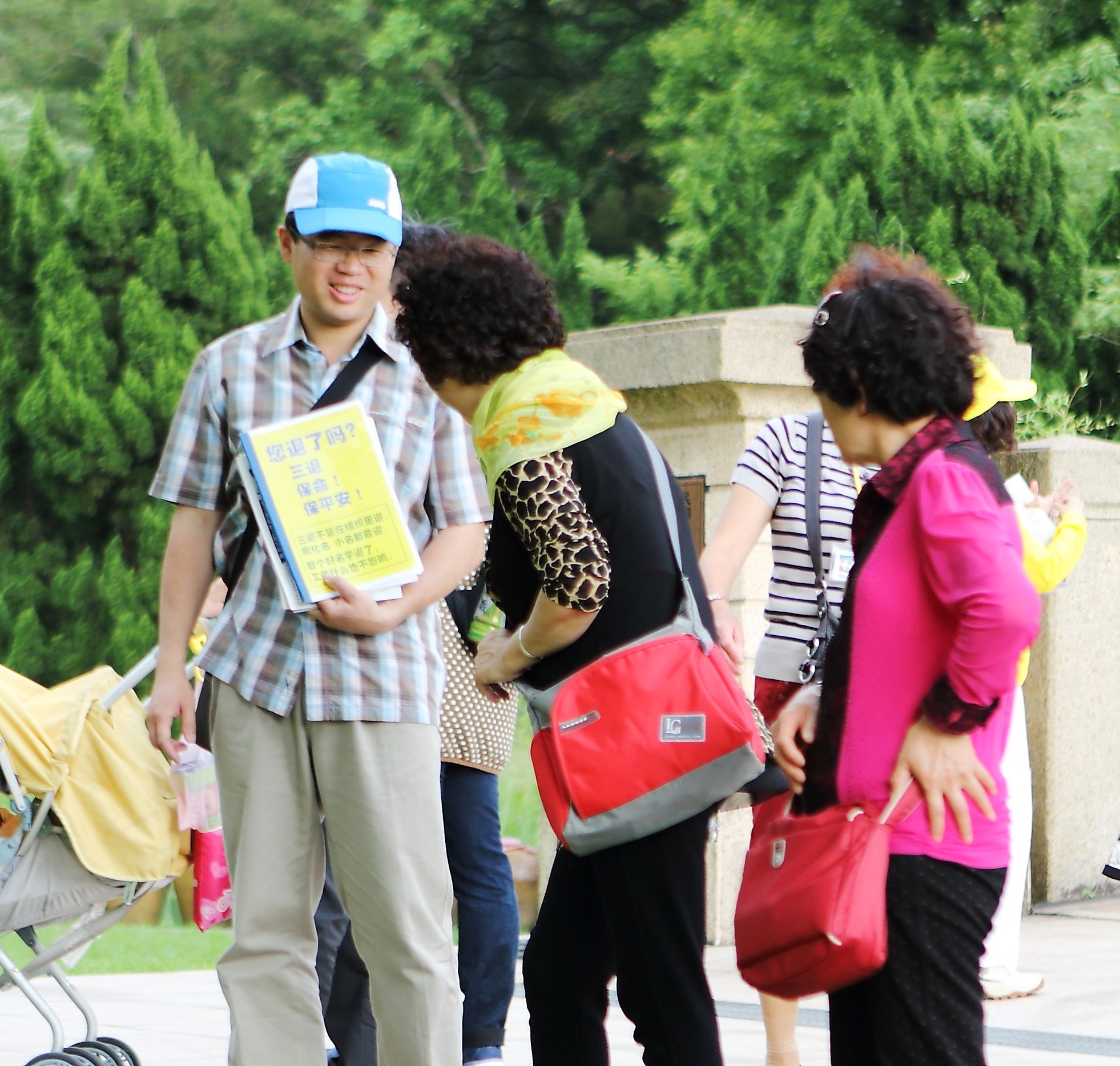 ![]() 图6-7:法轮功学员向大陆游客讲真相。 |