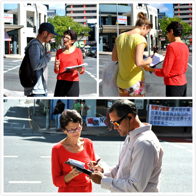 葛瑞斯说:“我在这里得以给路人更深入地讲解关于法轮功被迫害、被活摘器官的真相。许多人听后感到非常骇然。有些人质问:人怎么可以为了得到他人的器官而杀害他人。”许多路人听了真相后都表示一定会更关注此事,并进一步去了解法轮功。